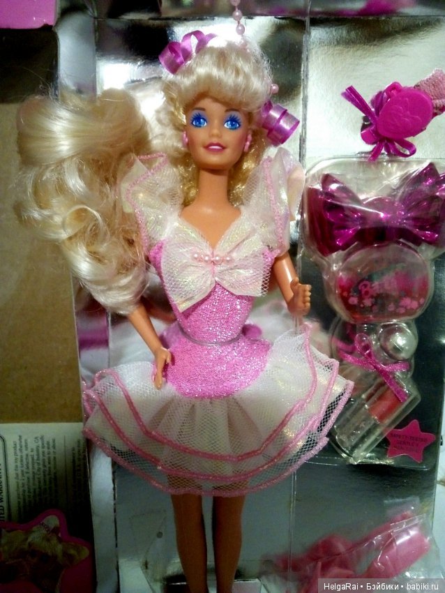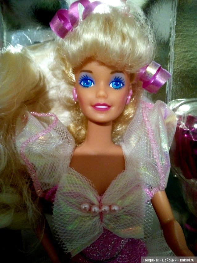 Birthday Surprise Barbie меня как раз тоже смущала яркостью мейка, вернее нюансом 90-х — тени под бровь перламутровых оттенков. Но я решилась заказать ее и не пожалела)