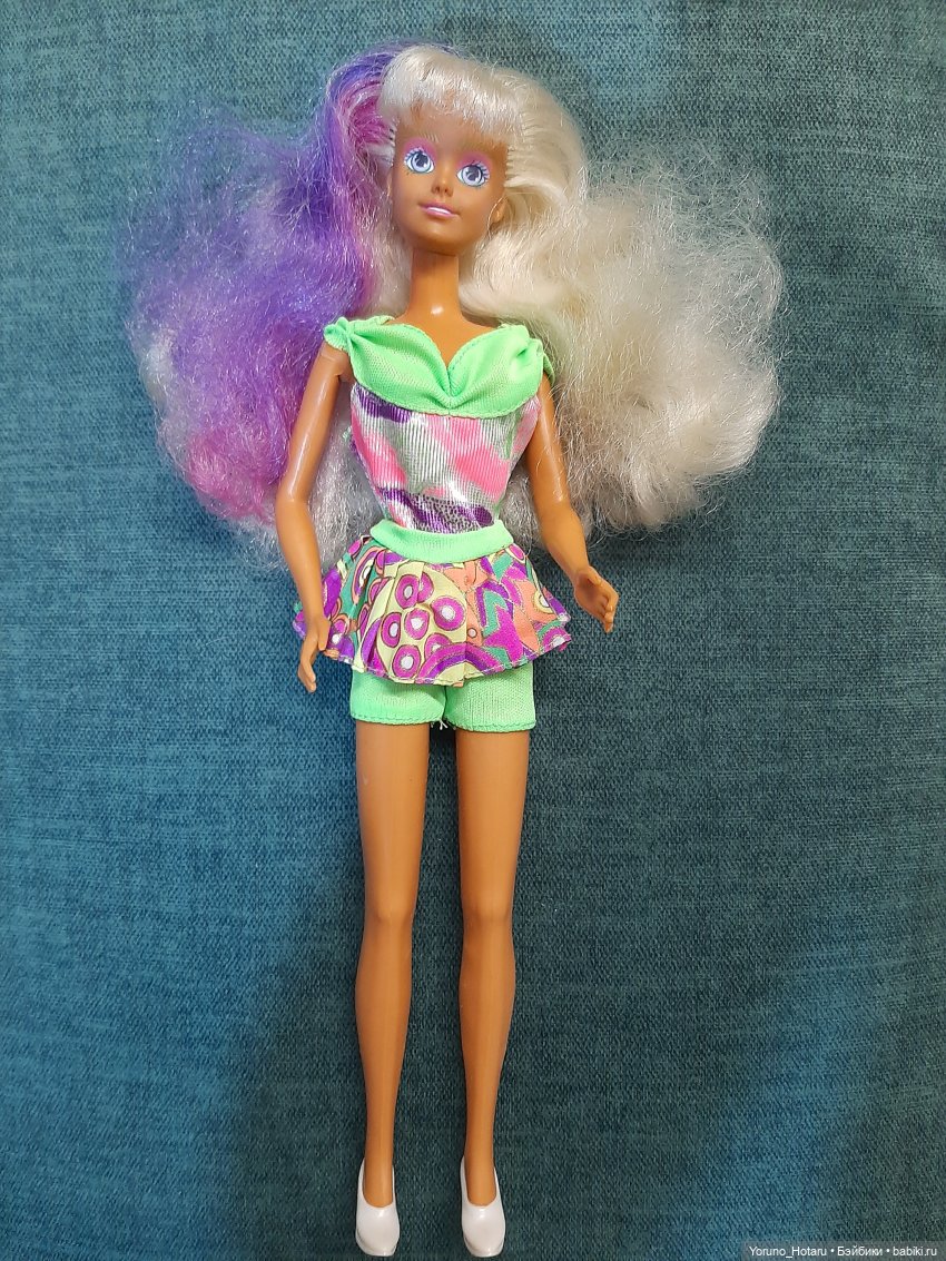 В детстве, в одном из ларьков, мама купила мне жевательную резинку. В подарок к ней продавец вручил еще и альбом для наклеек. Куда их надо было собирать и вклеивать. Когда соберешь все и пошлешь по адресу на буклете. В подарок обещали прислать куклу Sindy. Тогда с ума по ней сходили все дети! По крайней мере в моем окружении. Не по Barbie (о ней мы узнали чуть позже). И в 90-е между этими куклами была нешуточная конкуренция. Все собирали наклейки Сhabel! К слову сказать не только девчонки, но и мальчишки. И мечтали получить эту куклу в подарок. Собирали наклейки серьезно. Обмениваясь между друг другом, если случались повторы. Даже проигрывали в фанты, или фишки. Так собственно и произошло мое знакомство с Sindy. Потом я уже собирала и вкладыши с ней. У меня был и красивый журнал, где было много ее фотографий. Родители накупили мне кукол-аналогов. Которые были значительно дешевле оригинала. И у которых была отвратительная прошивка волос. И не такие яркие и модные наряды… В детстве моей мечте было не суждено сбыться! Но уже став взрослой и солидной тетенькой. Я закрыла этот гештальт. Увидела ее на авито. Она еще и NRFB. Это была любовь с первого взгляда. Сердце дрогнуло… Заказала доставкой и вот она у меня! Сквозь года, как говорится. Эта кукла из футбольной серии, от компании Hasbro. Она изготовлена в 1995 г. Ей 30 лет! Мечты сбываются, пусть и не сразу сбываются. Пусть даже сначала подолгу не сбываются. В такие моменты, хочется прыгать от радости как в детстве! Приходится держать себя в руках.