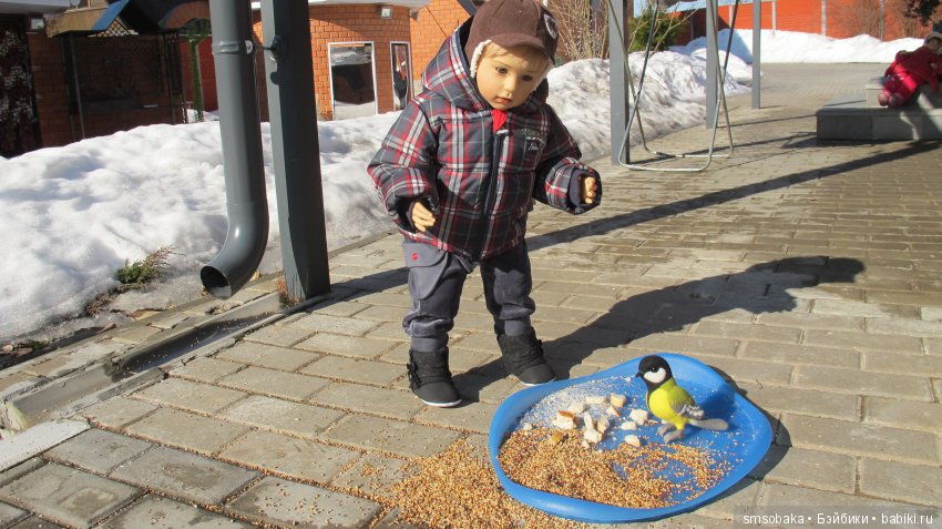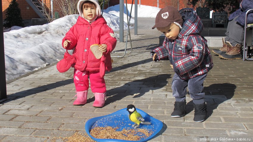 у меня тоже есть)) Очень её люблю) но на улицу что-то не выходили, а вы молодцы! Так красиво она смотрится в своем наряде на ярком белом снегу) Чудесный друг её очень дополняет картинку)) И птички, ах, как же хороши!))