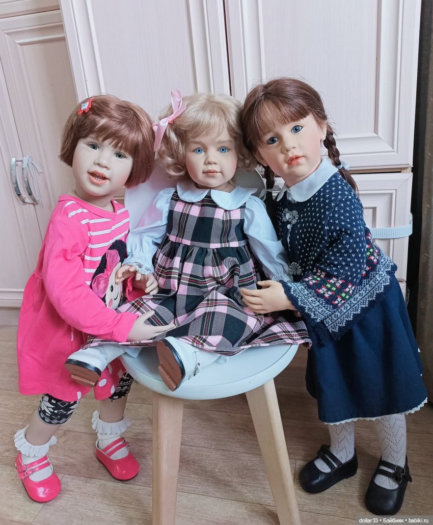и сегодня приехала еще девочка Марго, она к сожалению без аутфита, одела в платьишко, которое нашлось по размеру. У нее нет такого каркаса, как у остальных, прощупывается проволока, но сложно так руки согнуть, как у других девочек. Приходите на нас посмотреть, приводите сестричек дружить) И немножко фоточек всех вместе