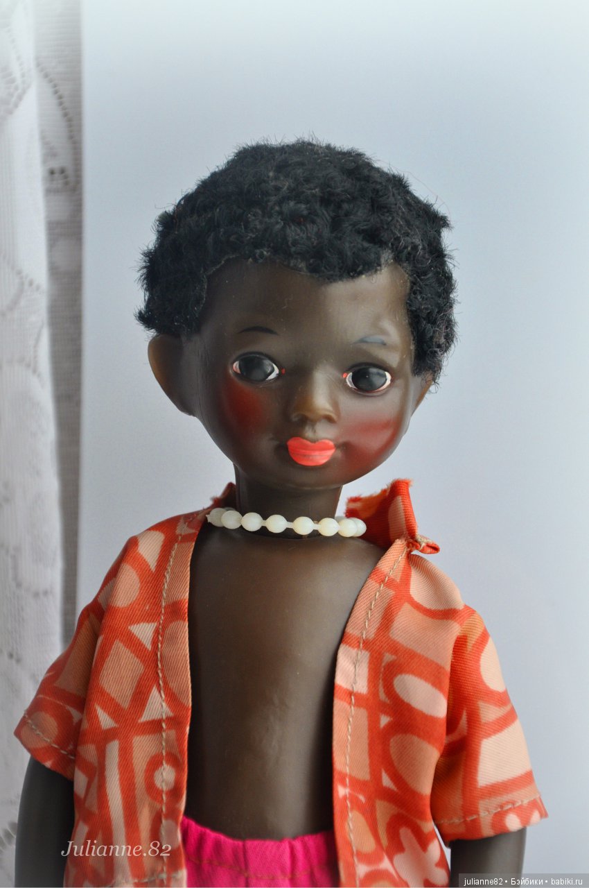 Всем доброго дня! С детства мечтала о кукле-негритенке. Фабрику не назову, не помню. А может, они разные. И вот на Мешке удалось купить сразу двух таких ребят. Пока жду, когда приедут, а пока хочу спросить совета. Конечно, время наложило на этих кукол свой отпечаток в виде царапин и стертых красок. Стоит ли мне реставрировать их, или лучше сохранить первозданный вид и аутентичность? Фото от хозяев кукол.