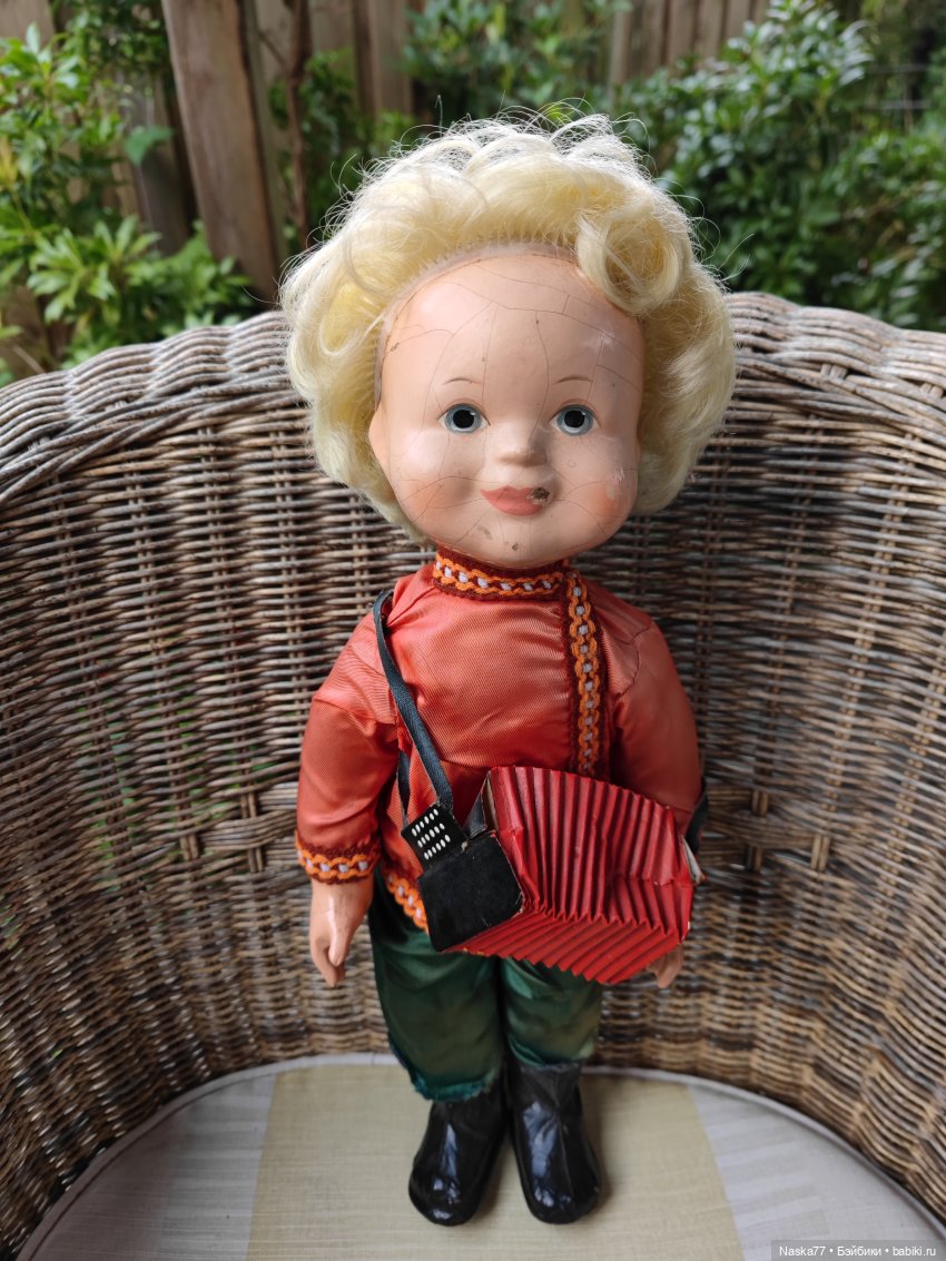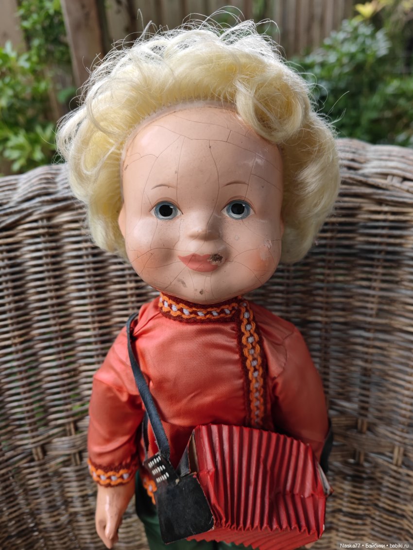 Лицо куклы было разукрашено чем-то черным. К счастью, это оказался не фломастер, а черный карандаш, оттереть его оказалось легко, даже следов не осталось. Парика у Васи, можно сказать, не было, но в целом он был ничего. Только гармошку где-то потерял.