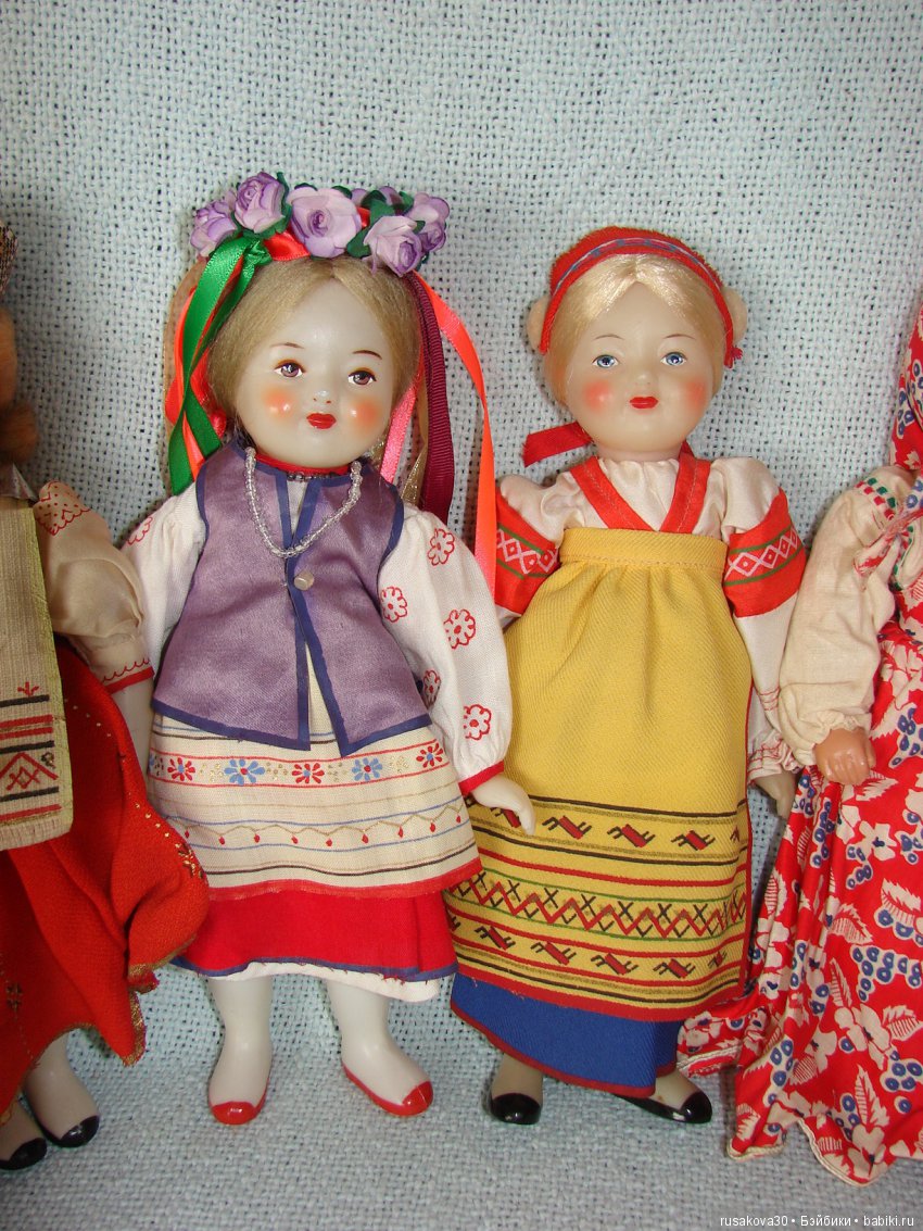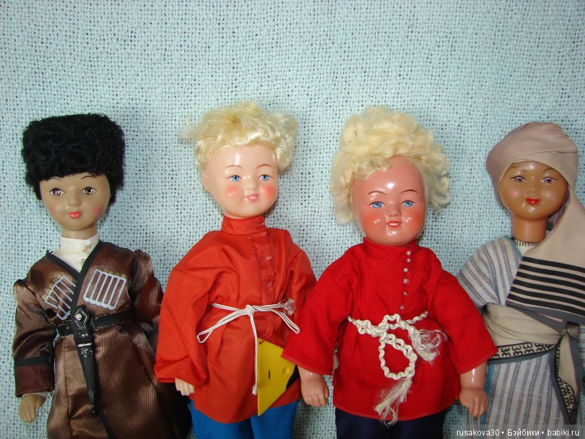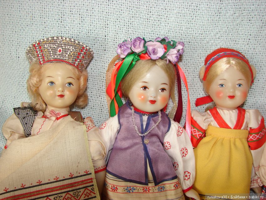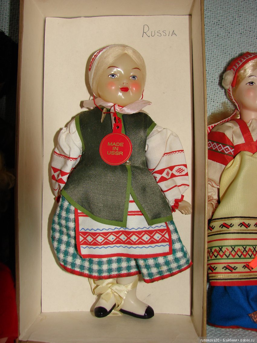 Советские куклы выпущены на московской фабрике сувенирных и подарочных игрушек.