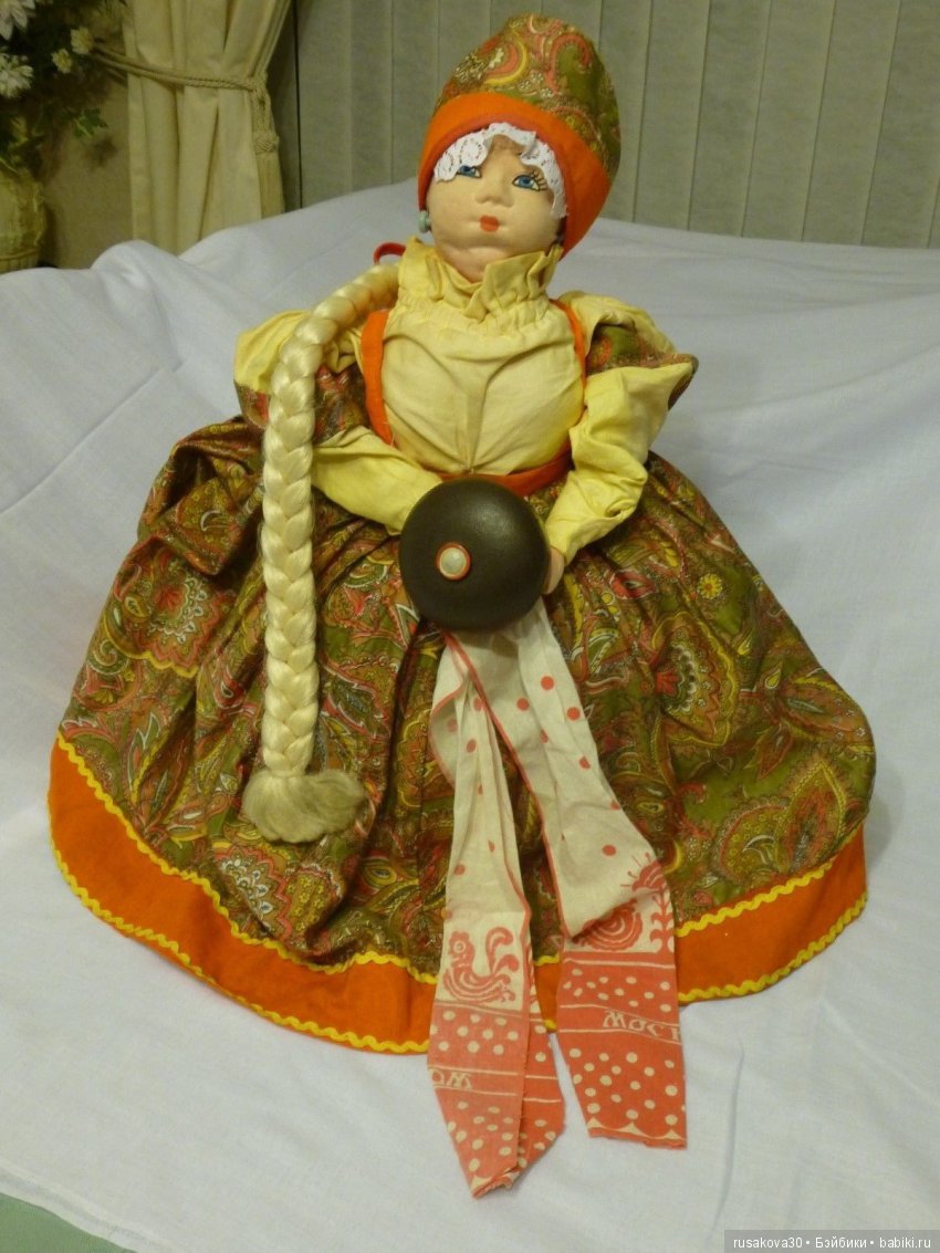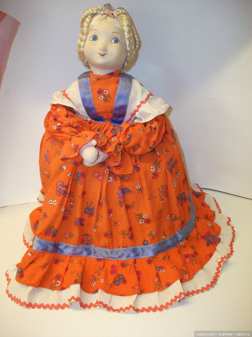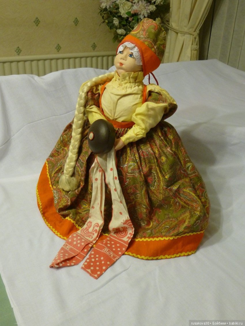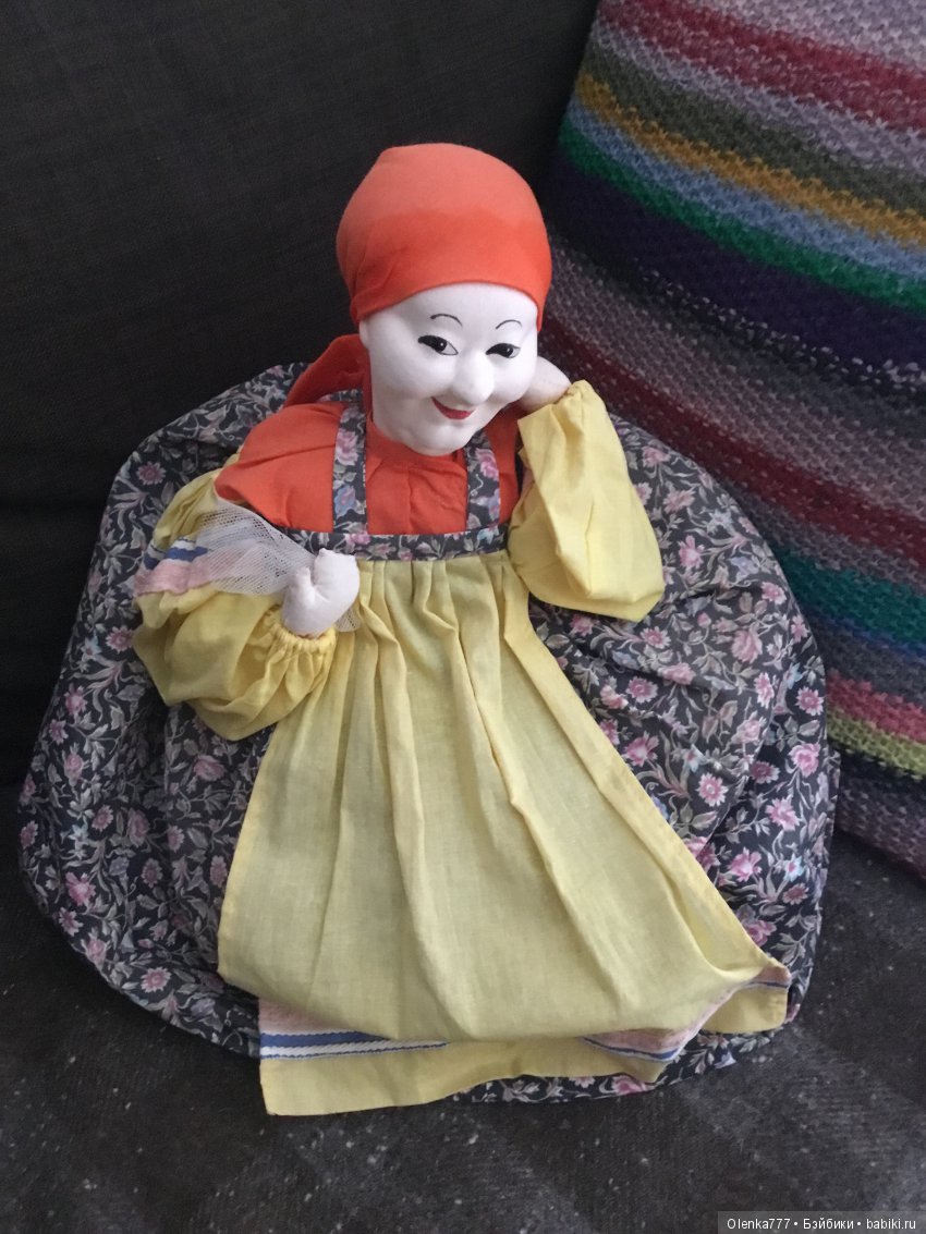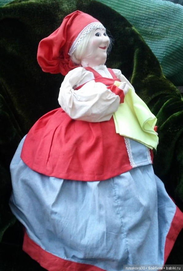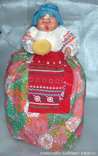 У моей бабушки тоже была кукла на чайник, кажется, это была Анюта, я маленькая очень жалела, что мне не разрешали с ней играть!))
