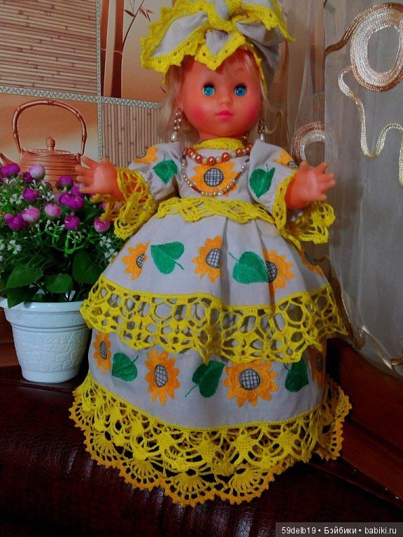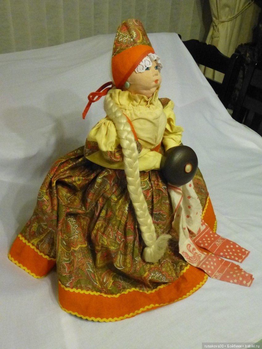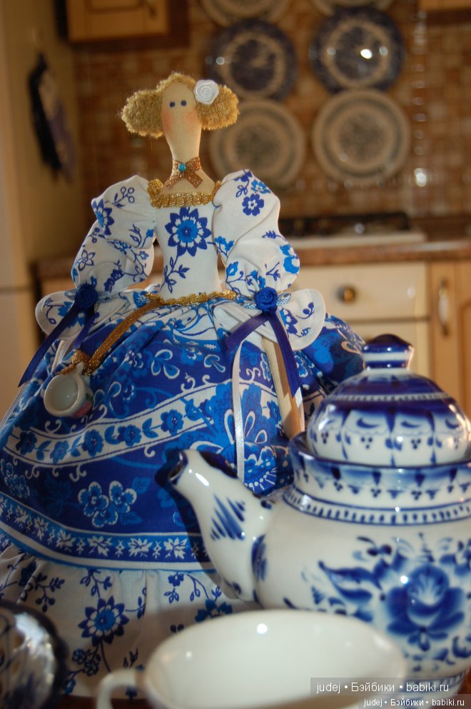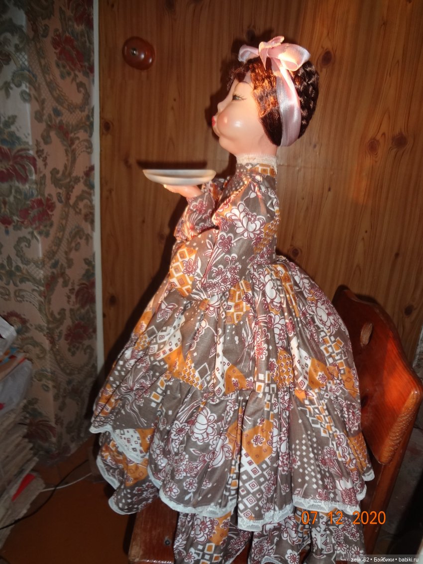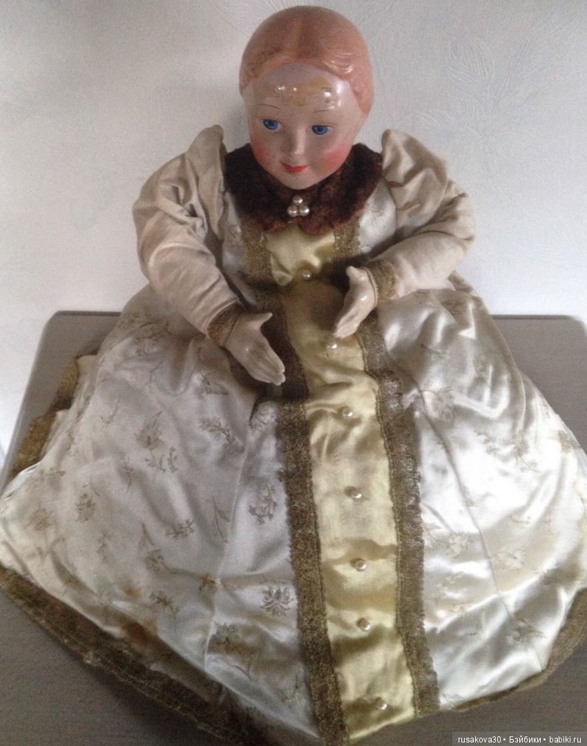 У моей бабушки тоже была кукла на чайник, кажется, это была Анюта, я маленькая очень жалела, что мне не разрешали с ней играть!))