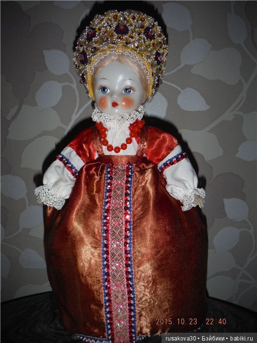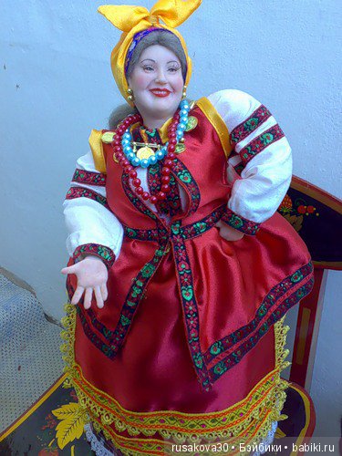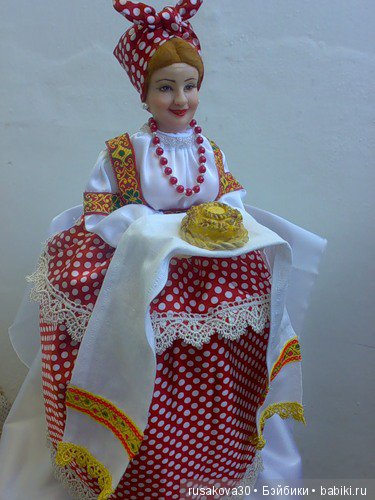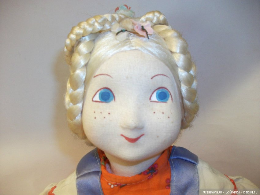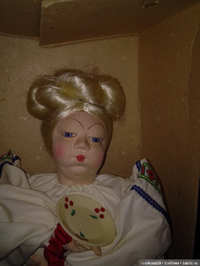 Эта красавица требует ремонта блузки. А точнее надо ее заменить совсем. Сарафан крепкий. И состояние куклы считаю нормальным.