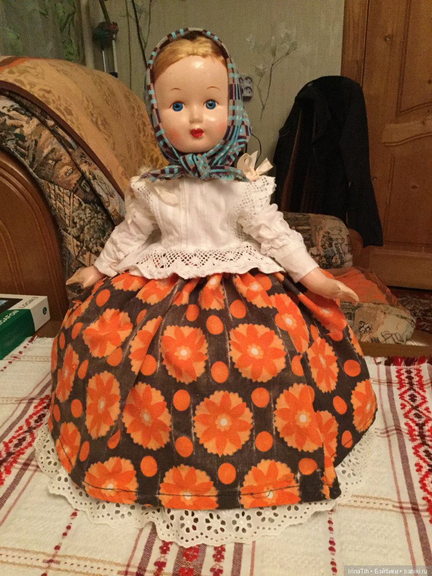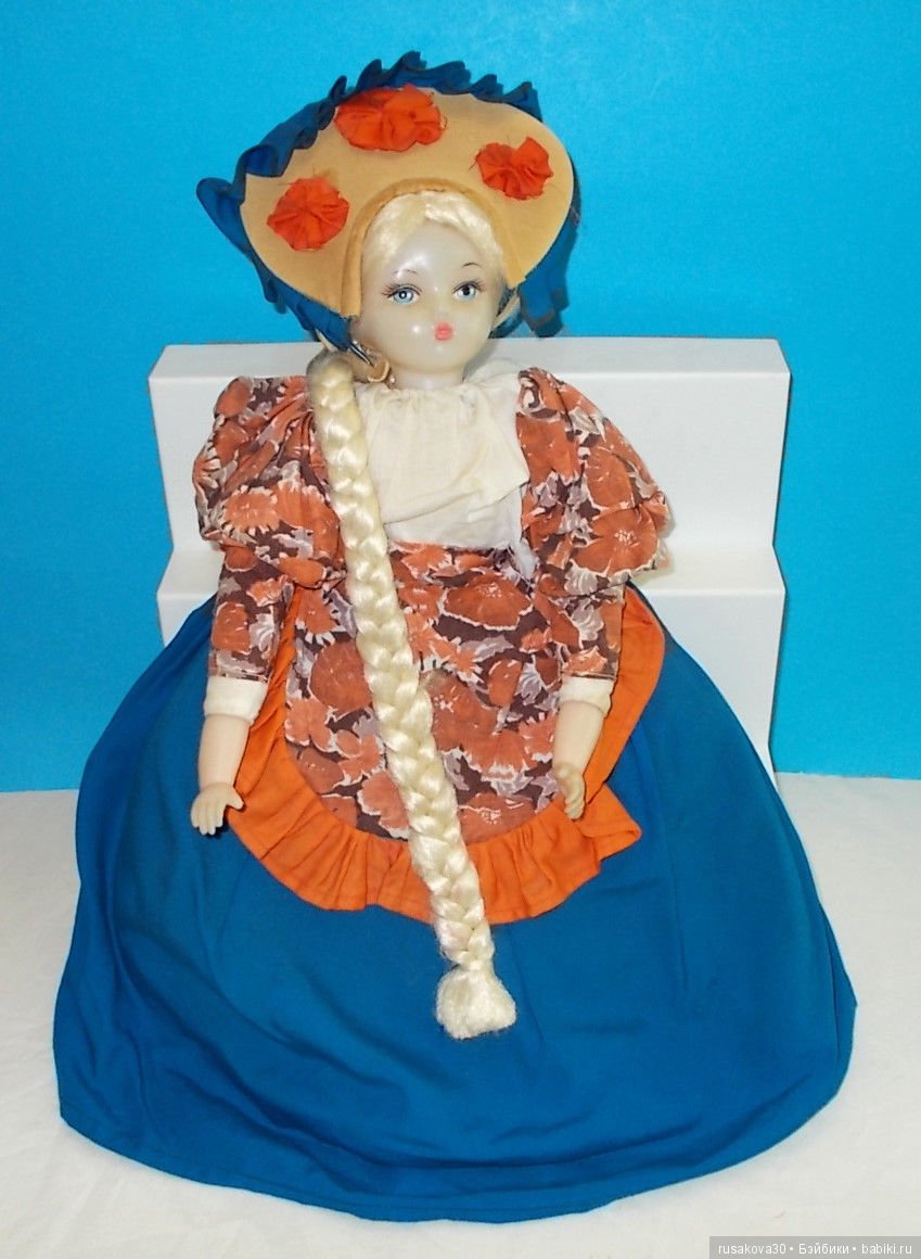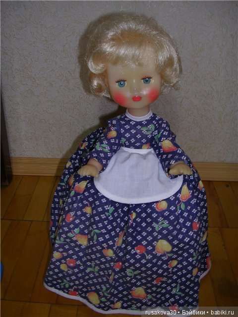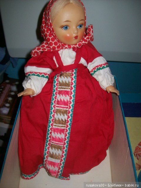 Выпускали таких кукол в городе Ярославль, завод «Луч».Только у нашей куклы, платье было другого цвета.