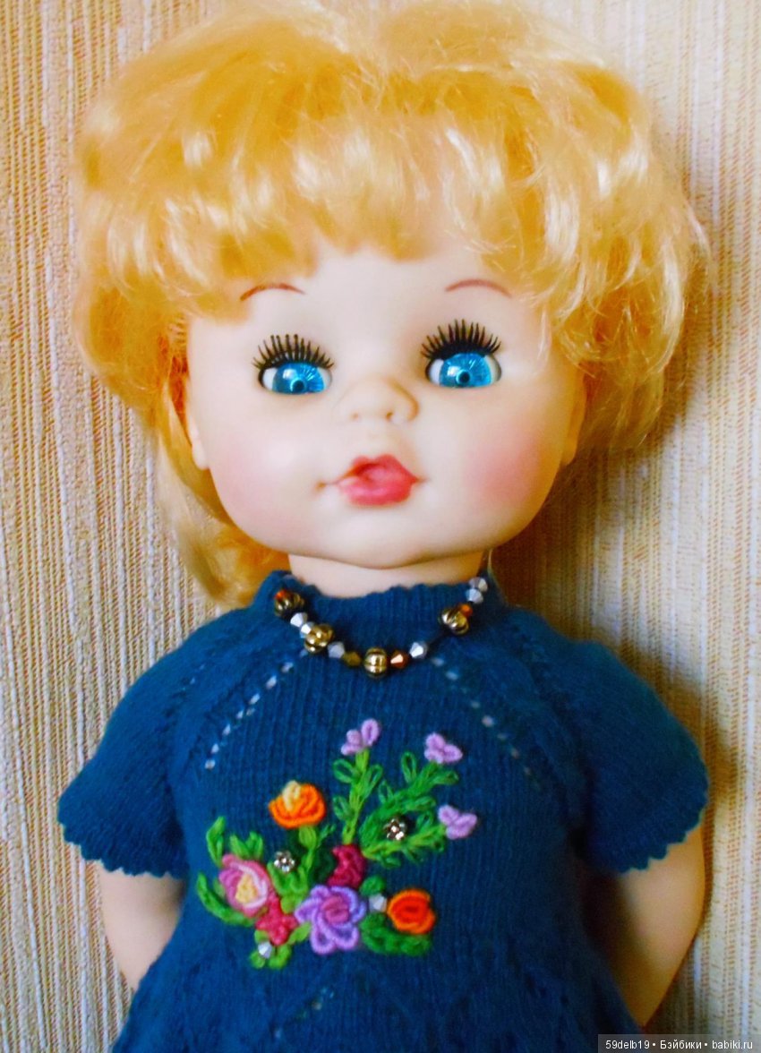 Женя Донецкой фабрики игрушек. 40 см. Волос очень много, и их довольно сложно расчесывать. Об этой куколке я делала первый свой топик на «Бейбиках» https://babiki.ru/blog/remont-vintazh/115328.html. Кукла была в жутком состоянии. Платье, естественно, не родное.