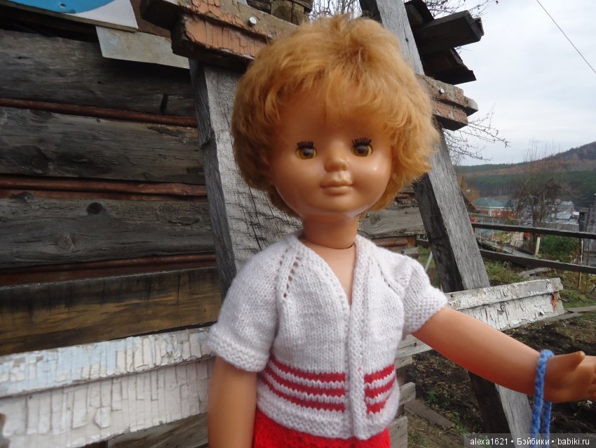 Женя из Ярославля (Химический завод «Луч»). 30 см. Пришла ко мне в родном сарафане и родных же туфельках. Кофточку я ей связала. Симпатяга!
