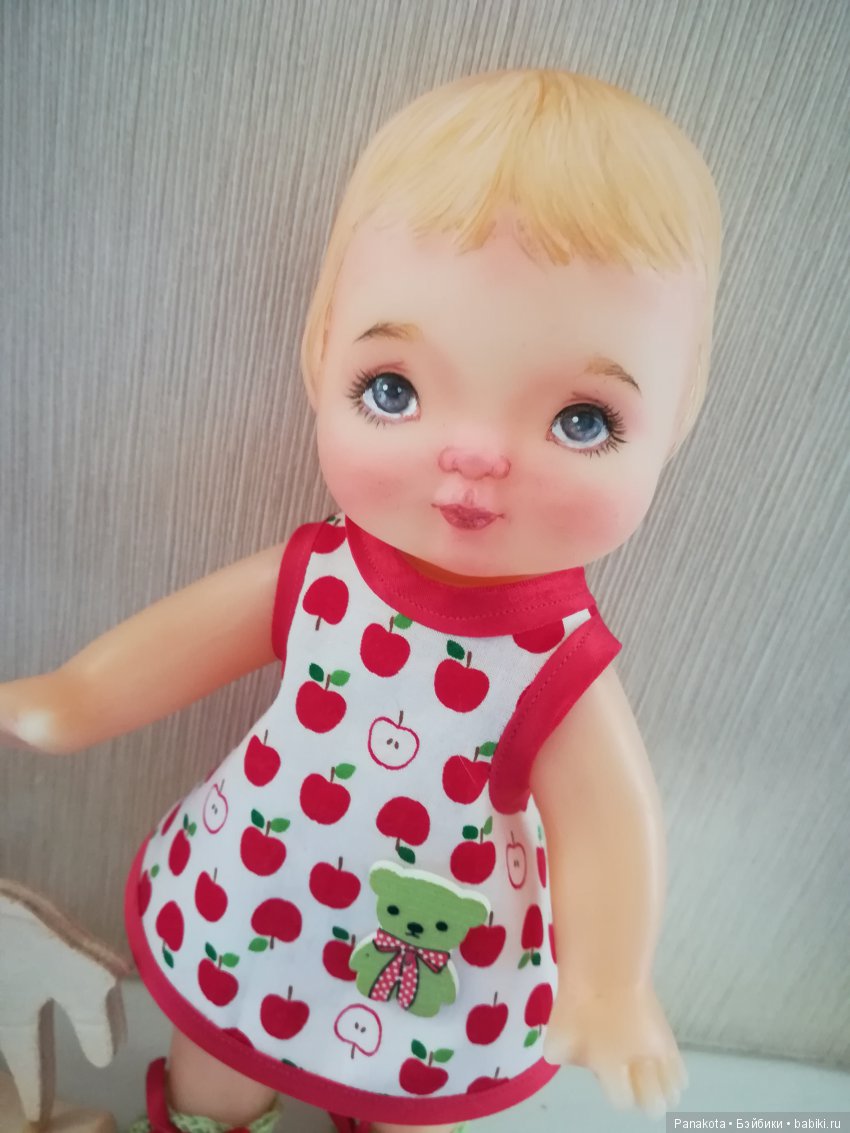 Ох и затягивает же это дело… Взять убоженьку замурзанную, и сделать красоту и милость))). Это кукла фабрики Кругозор привлекла моё внимание тем, что у неё рисованые глазки. Не переставлять)) про эпопею с волосами я даже не думала. Два месяца!!! Голова то не барби… Потом стричь надо… Как? Потом уложить… Чём?.. И наконец роспись! Ура!)) девчонка получилась очень позитивная! Долго провозилась с платьем, вроде не сложно, а вот провозилась… Да, и красивые фото истории я делать не умею… Ну что есть, то и покажу!)