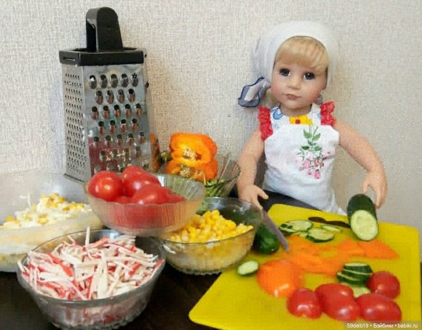Ей в помощники — моя куколка Поваренок, которую сделала я сама)