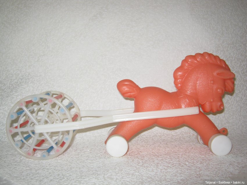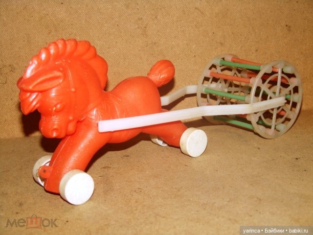 Такой лошадки у меня не было, но помню у многих соседей ребятишек они были. А вот чем лошадка была запряжена? Не помню!!! Может карета была какая, а может цилиндр из трубочек, а внутри шарик погремушка. Вот вылетело у меня это из головы и все тут!!! Если кто помнит, подскажите, а ещё лучше — фото может у кого есть такой лошадки со всей упряжкой? Клеймо — как латинская 5 — V, а вверху маленький ромбик. Саратовская? или ошибаюсь. Жду вашей помощи!