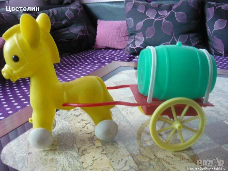 А про лошадку, у нас тут таких много продают, я думала раньше, что они болгарские, но, видимо, привозили из СССР. И вот буквально вчера я видела такую с повозкой, как мне казалось. После долгих и упорных поисков, во время которых я нашла энное количество таких же точно красных лошадок, но без дырочек, и к ним явно не предполагалась упряжь, ту вчерашнюю. А она другая оказалась! Но всякий случай показую.))