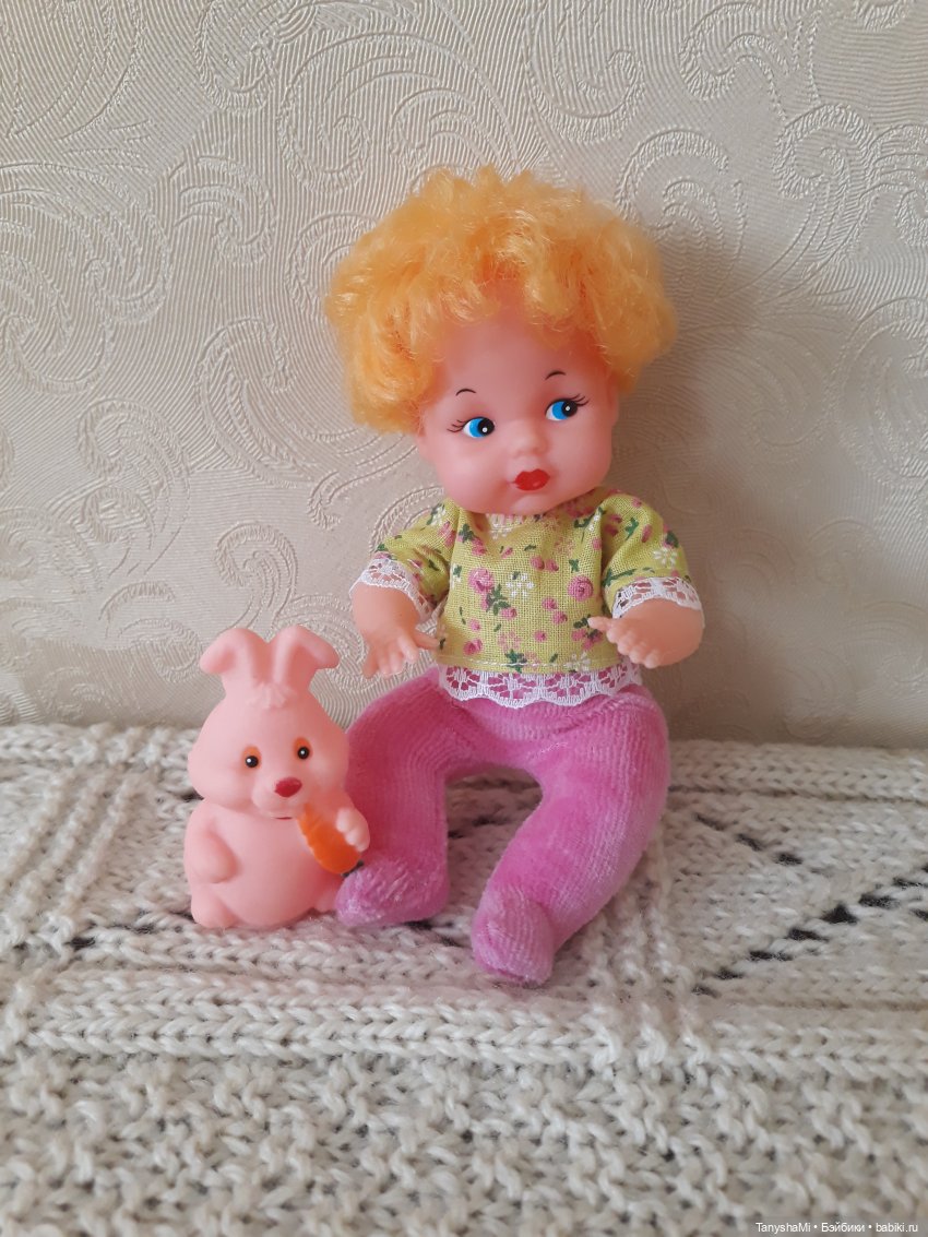 Вот такой пупсик моей сестры, продавался в тазике и стоил то копейки. Я сама покупала его для сестрички.