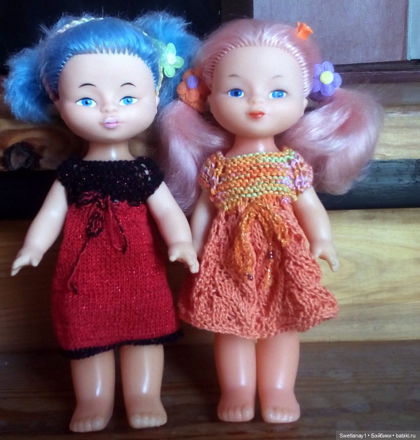 Уж как я с ними играла не буду много писать, напишу лишь то, что кукол я своих берегла, в будние дни, они у меня мирно сидели на шифоньере, а по выходным, я им перемывала волосы, аккуратно их расчесывала, стирала одежду, гладила, разговаривала с ними и вновь выставляла по росту на шифоньер. И только одну «зарубежку» я тискала каждый день, катала ее в колясках, кормила через разорванный рот, шила, вязала ей, и даже лупила ее, за то, что она от меня убежала на улице и чуть под машину не попала!!! А потом жалела ее и плакала (по настоящему), что я своего «ребенка» обидела. Кстати, эту «сценку» с «убежавшим ребенком» я взяла из жизни, увидела в окошко, сей воспитательный момент, какой-то молодой женщины, и он меня так впечатлил, что я решила его повторить)))…