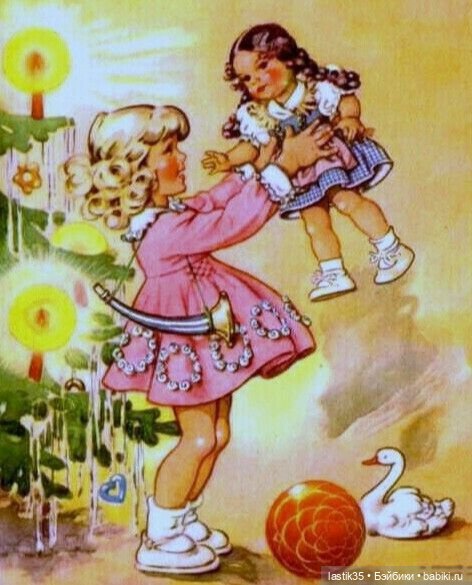 И тогда я нашла открыточку, которая мне очень нравилась в детстве. В доме у родителей сохранился мой альбом с открытками, я в детстве их собирала, и такая там есть!