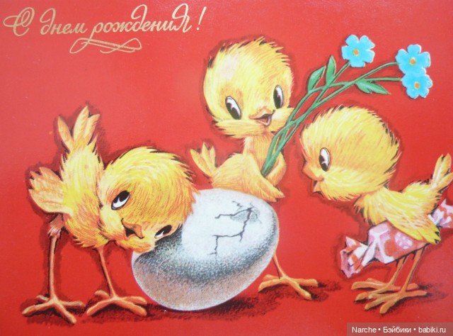 Цыплята!!! У меня такая то же была)) мне соседская бабушка много открыток отдавала и среди них такая то же была! А я и позабыла))) спасибо, что напомнила!))) как не хватает тут смайликов, выразить свои эмоции!