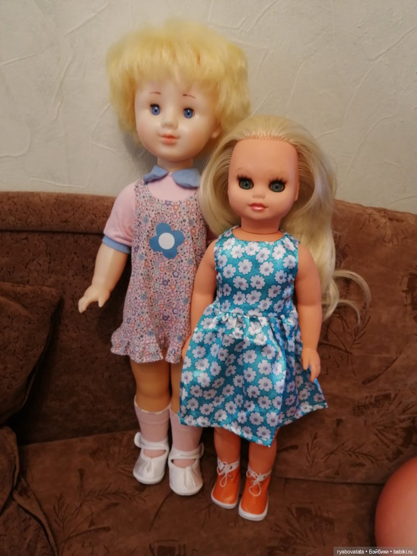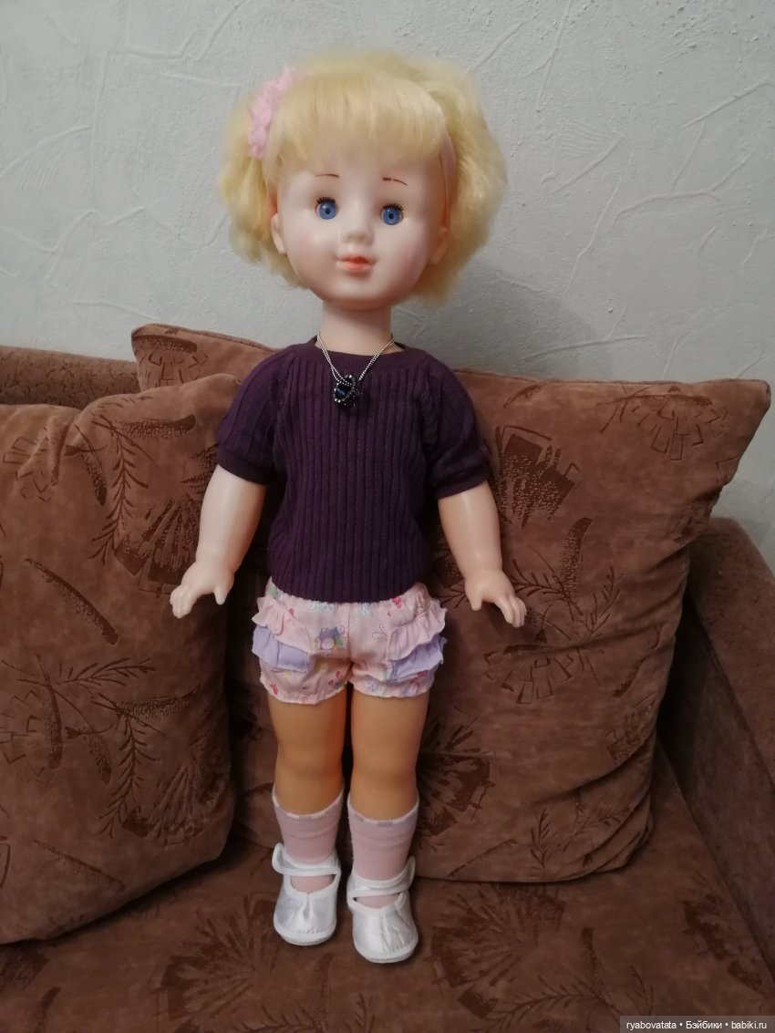 Это Новосибирская фабрика Пионер, моя была Василиса, но я видела таких в наряде красной шапочки и вроде ещё встречала с именем Лена, так говорили хозяйки кукол, что имя Лена у них было на этикетке.