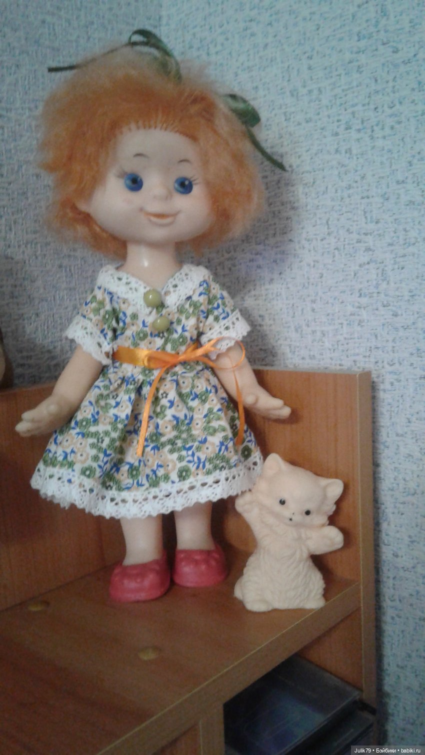 Здравствуйте, жители Бэйбиков. Хочу познакомить вас со свей новой куколкой. В эти бирюзовые глаза невозможно было не влюбиться с первого взгляда) Если не ошибаюсь, это кукла Инна фабрики «Весна». Вот только год рождения не знаю, не нашла. Приехала она ко мне немножко лохматая и чумазенькая, но в очень хорошем состоянии. Правда сомневаюсь насчет платься. Родное оно или нет. Рукава длинноваты. Да и через поиск в таком платье она мне не попалась.