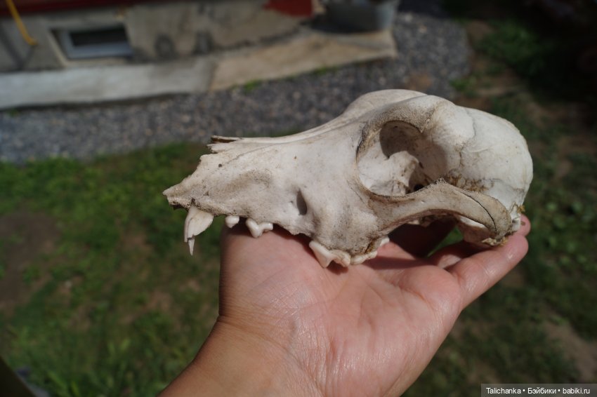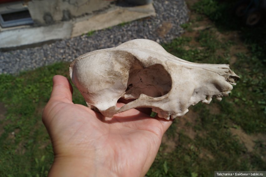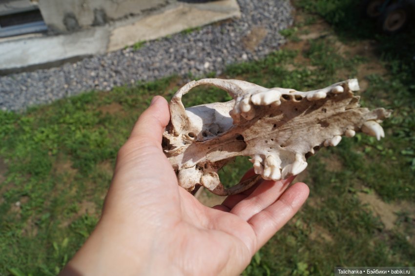 Ой, не забыть бы! В прошлом году муж с детьми ездил к моей младшей сестре, детей у них оставил, а сам с мужем сестры ушёл в конец их улицы, там уже лес))) это новый район, новые дома, город растёт. Вот, за рыжиками ходили, буквально за домом и принёс от туда череп. Завтра при свете дня покажу, может сынульке вашему интересно будет)))