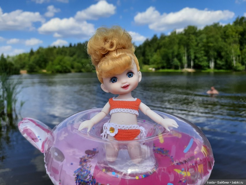 Положительных эмоций — море! Я сначала фотографировала кукол, потом сидела в рыбацком кресле и шила прихватки) А наш папа готовил куриный бульон. Вкусно!) А Белочка то как на задних лапках стояла, что бы и ей перепало вкусненькое))) налили ей в её походную чашку бульончика) поставили на островок травки. А она взяла зубами и к нам поближе перенесла) Умница наша)