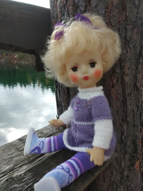 Со временем девочка облысела, выгорела и потеряла реснички. Я её лет 10-12 назад как смогла привела в порядок. Конечно сейчас я бы все по другому сделала, но в то время я не знала, не умела и не понимала в кукольном лечении ни чего, а восстановить её очень хотелось. Ведь подружка детства! Я ей много кофточек вязала, однотипных, простых но мне тогда казались они потрясающе красивыми! Цвета то были разные) белая, розовая, голубая.