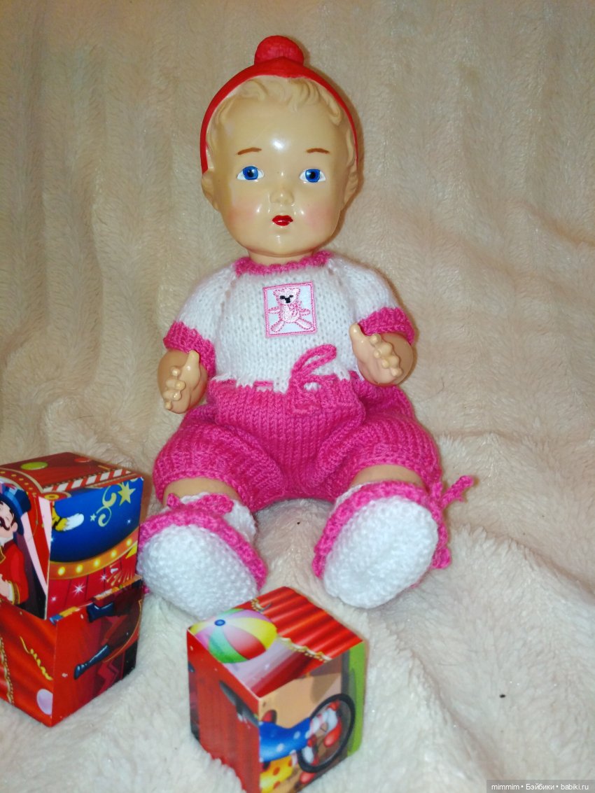 Потом сшила бельишко из детского пододеяльника 70-х годов (под которым сама спала), где-то руками, где-то на машинке. Сшила колготочки, связала кофточку с юбочкой.