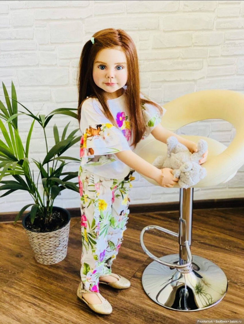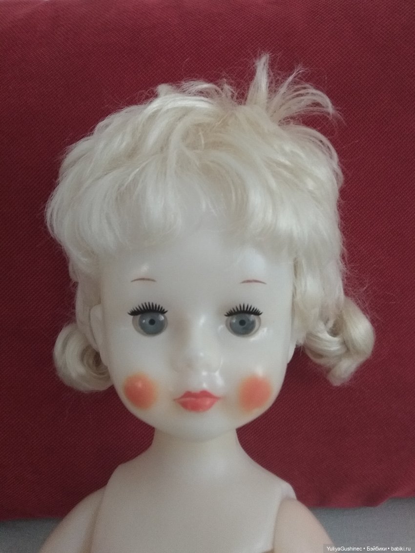 Мне нравятся такие прически у кукол — челка, сверху стриженые кудряшки, а сзади длинные. И к тому же я предпочитаю блондинок. Очень красивый цвет глазок.