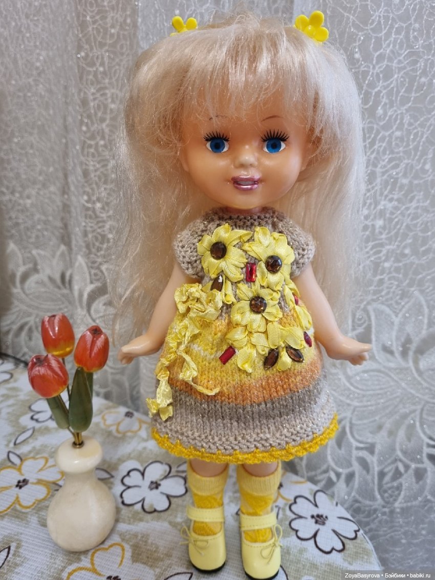 Мне как-то посчастливилось стать обладательницей куклы-мечты Валюши Ворошиловград с редким оригинальный мэйком и каштановыми кудрями. И, знаете, так захотелось найти ей старшую сестричку Лилю с таким же цветом волос. Искала неспешно. Попадались в основном блондиночки да редко рыжики. И тут неожиданно вижу Лилечку со свалянными в колтун каштановыми волосами, карими (УРА!!!) глазами, нежным фабричным мэйком, в родном платьице(на нём даже пластмассовые цветочки уцелели) и трусишках. Сразу же договорились с продавцом, девочка быстро доехала, чувствуя, что жду её очень!