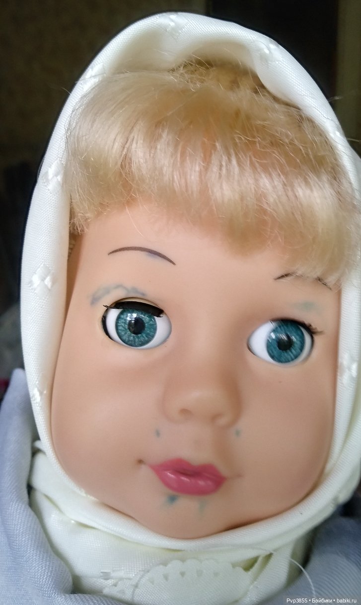 Самое интересное, что моя соседка весной мне такую же куколку привезла, подобрала около контейнера. И судя по материалу — он нетканый, очень некачественный, со временем он начинает рваться, по ресничкам — это уже более поздние выпуски. Точно после 2010. На шейке есть клеймо Весна. Этих малышек нужно вместе лечить и вместе выписывать)) всё таки сестрички) разлучать не надо)