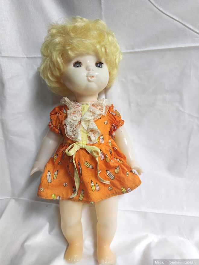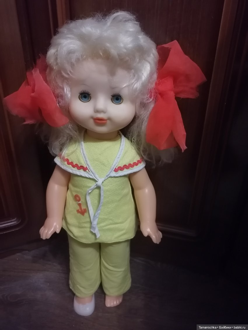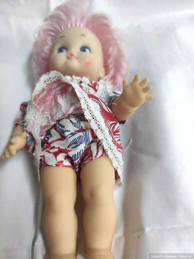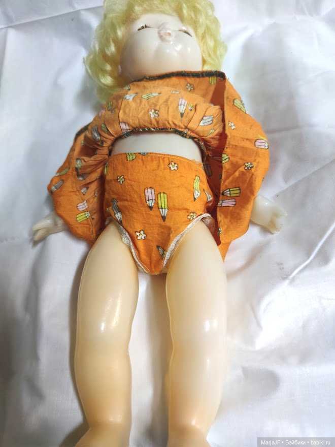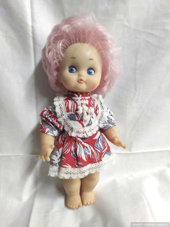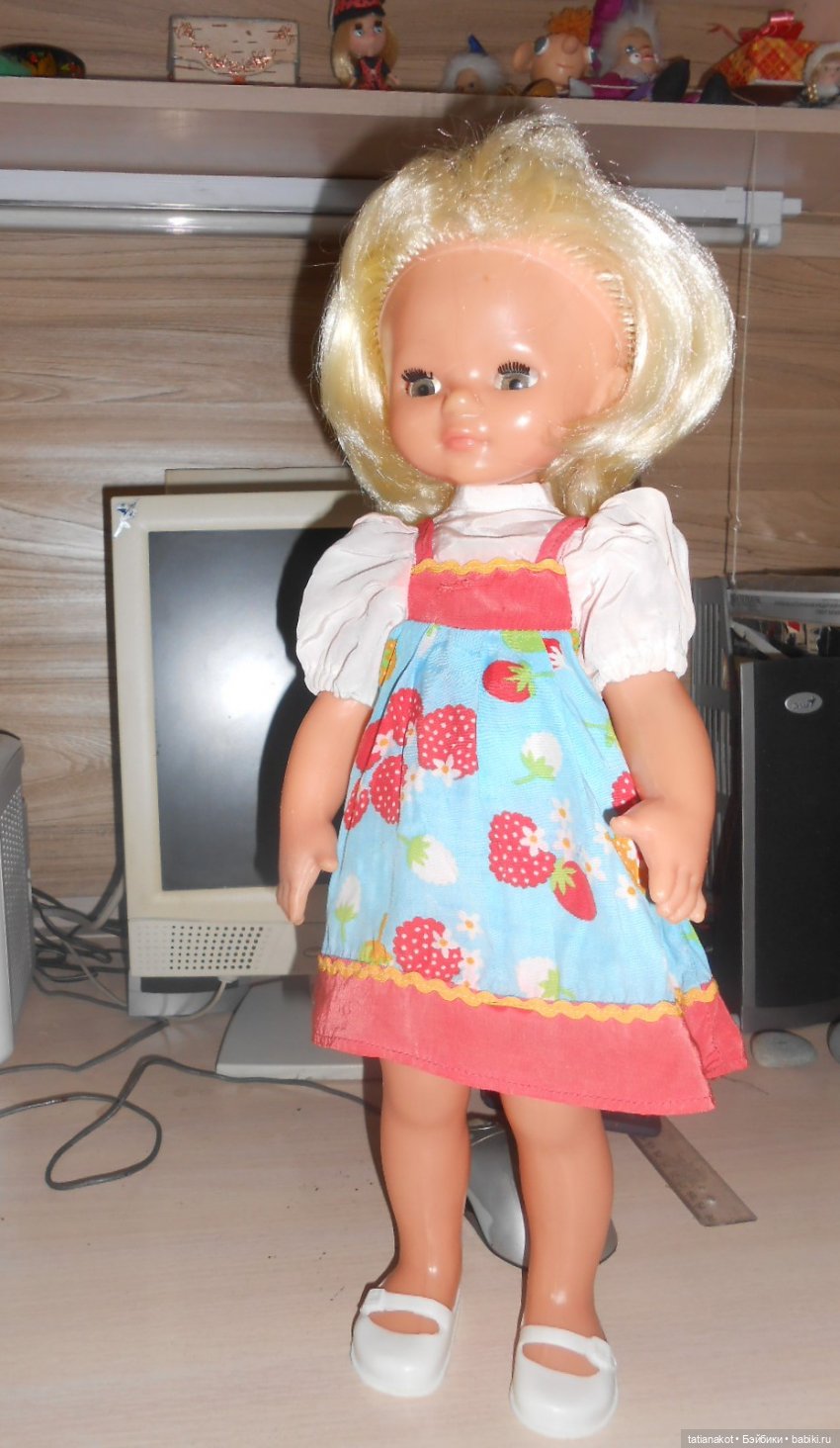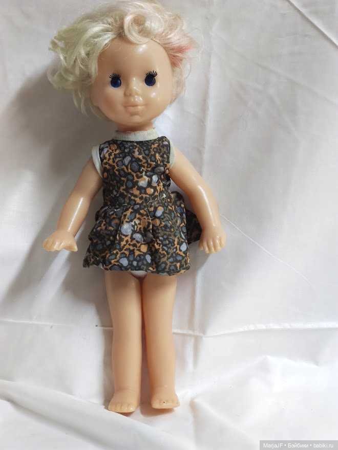 В детстве у меня была точно такая же. Помню, что заиграна была до того, что у неё отвалилась от крепления одна нога. И её пришлось выкинуть… Это теперь мы знаем, как это лечится, благодаря советам и практике Ирины, нашей кукольной феи ))