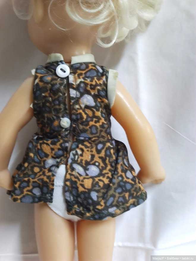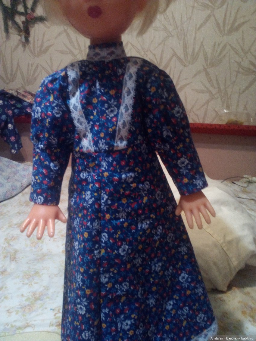 Куклу я нашла в этом наряде. Думала самодельный, но потом на ДП увидела Леночку в такой же одежке, расцветка только другая была.