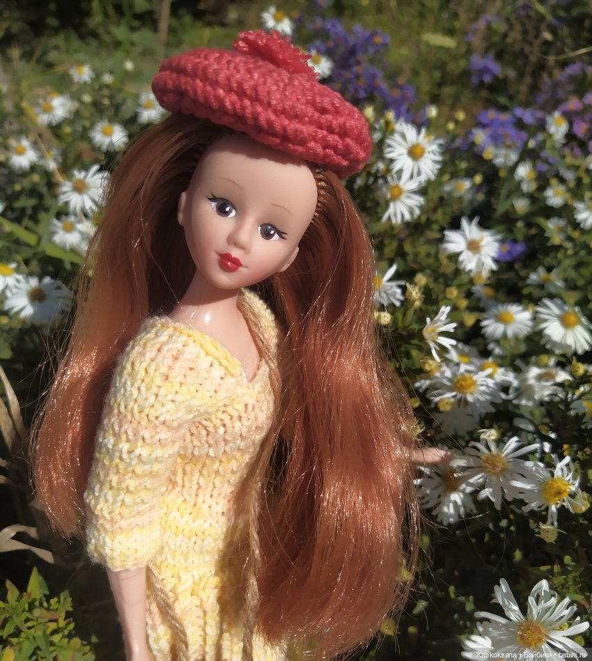 Куколка необычная, я тоже таких не видела ещё. Голова и лицо «не советские». Симпатичная девочка и наряд ей идёт.