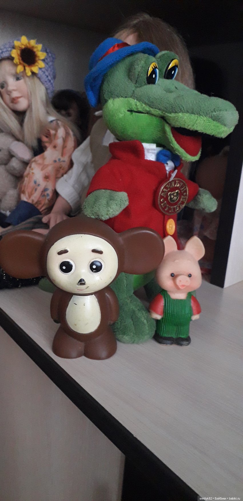 А Чебурашка именно такой, какого мне и хотелось, он из пластика. И мордочка милая.