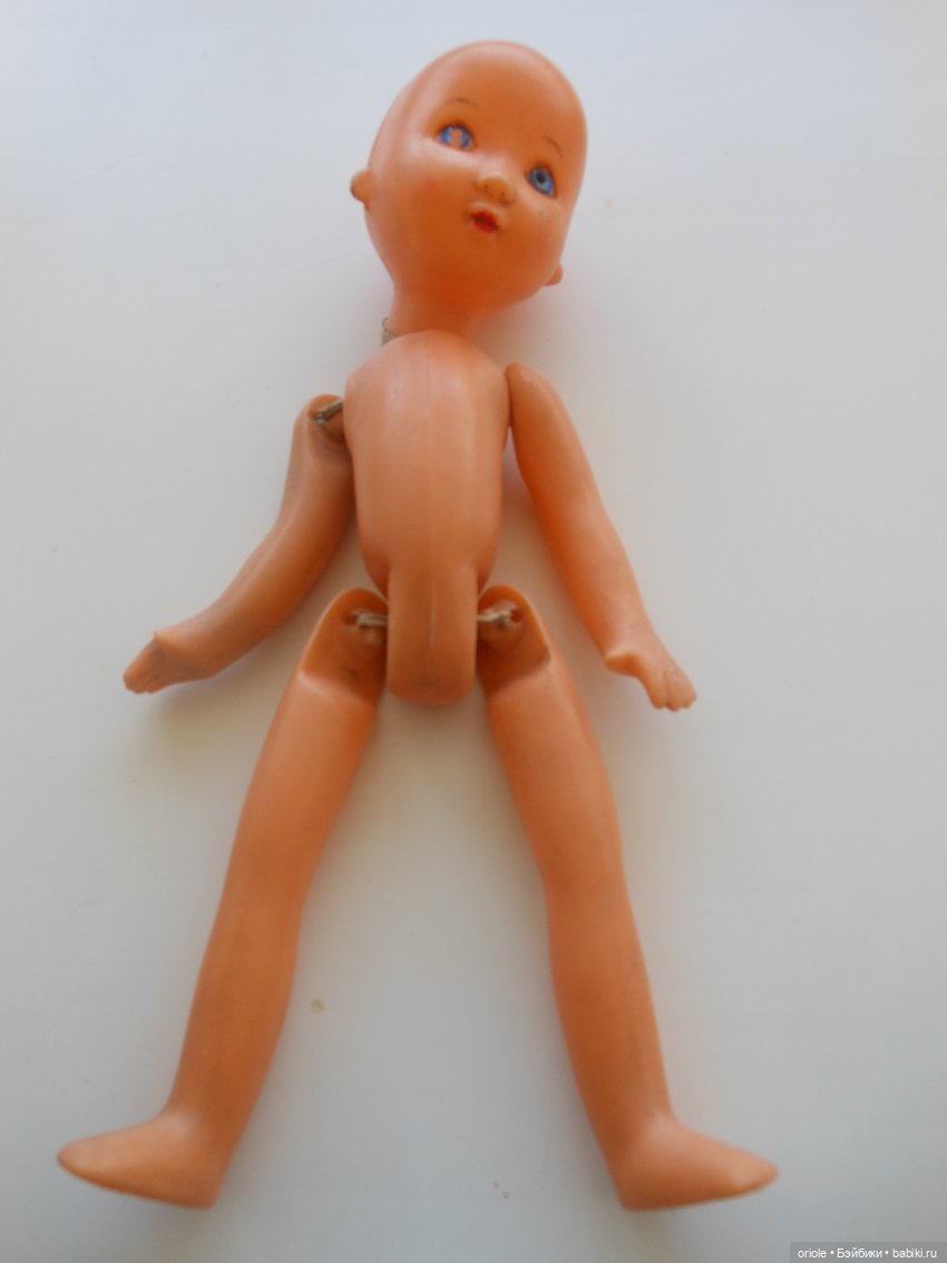 Я полагала, что это кукла фабрики «Вятка». Туловище и крепление ног очень похоже на шарнирную Женю. Но сколько ни смотрела различные каталоги, нигде не встречала такую куклу. Но теперь кажется, что она кузедеевская. Мечтаю однажды доехать до музея кукол в Кузедееве.