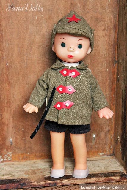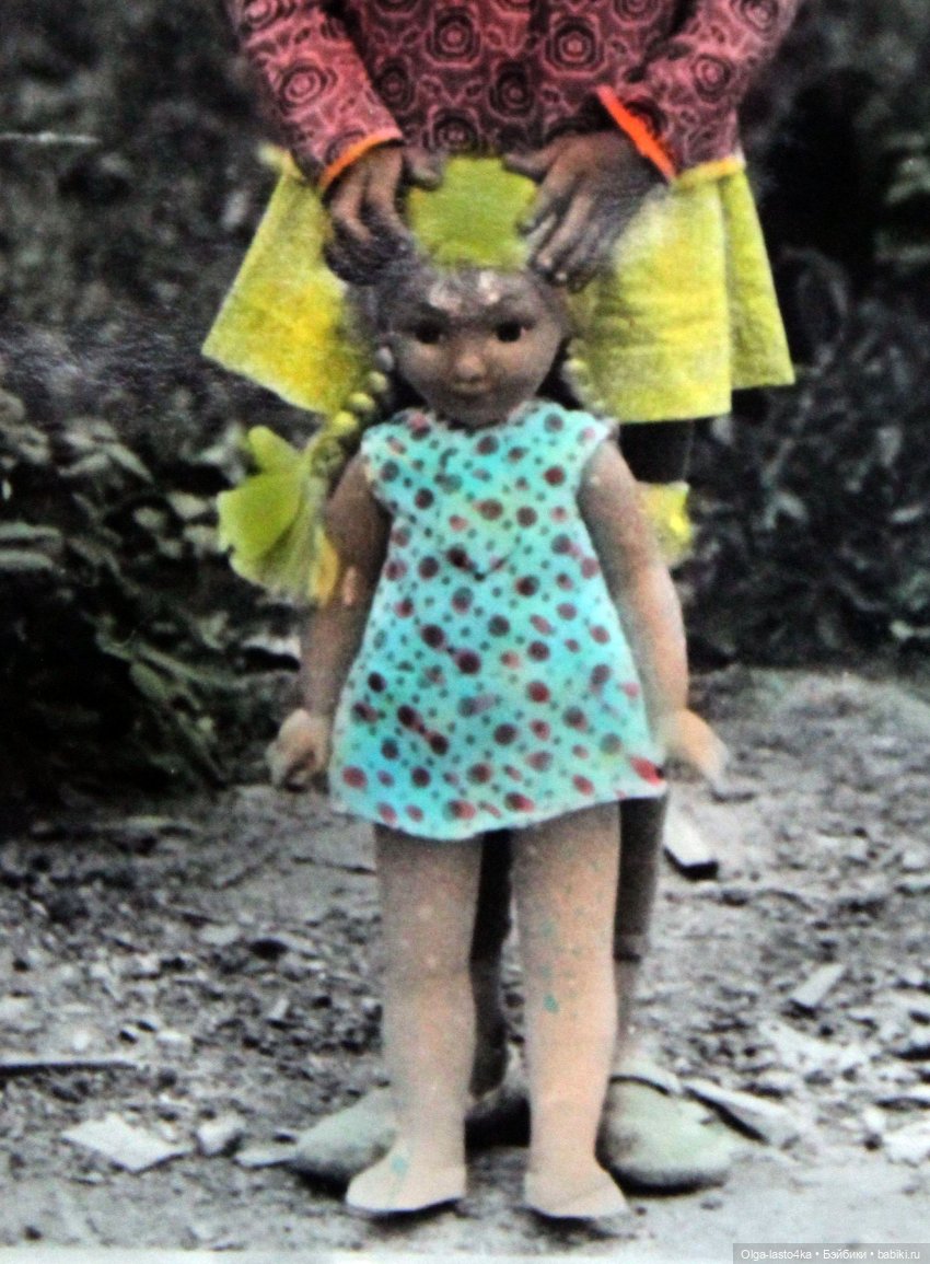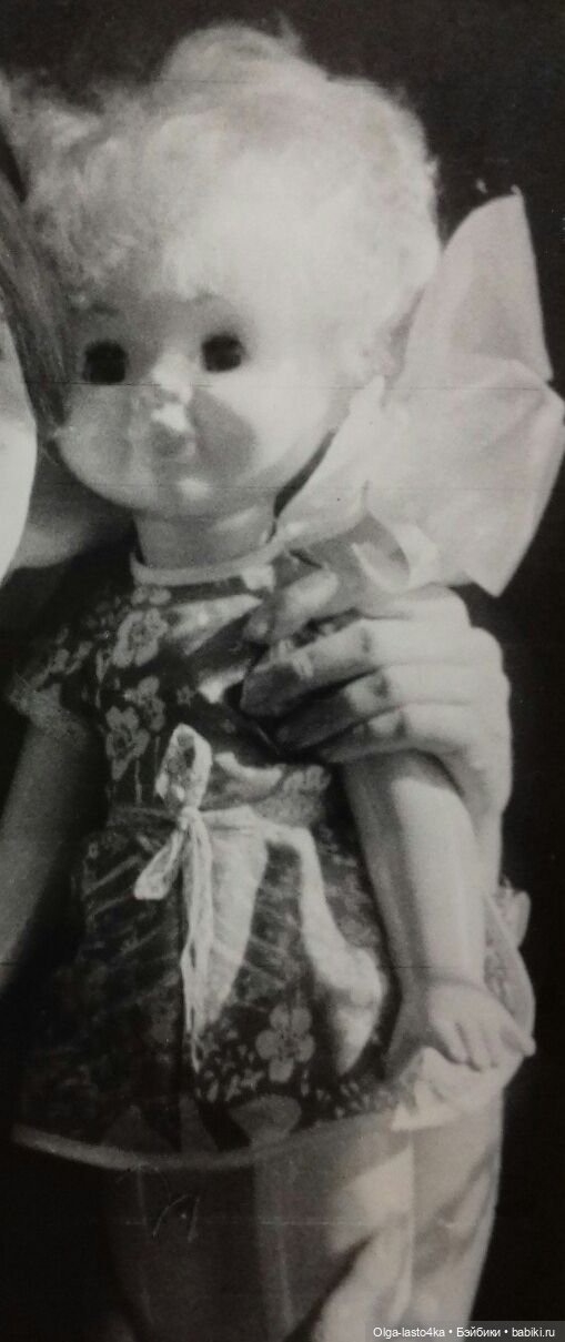 Я, как всегда, добавлю из своей копилочки. У меня есть только маленький пупсик, поэтому все фото из итернета, источники все открытые. Вот такой пупсик у меня есть, но голенький, одежды не сохранилось. Здесь на этикетке могу различить «тошка» — Антошка?
