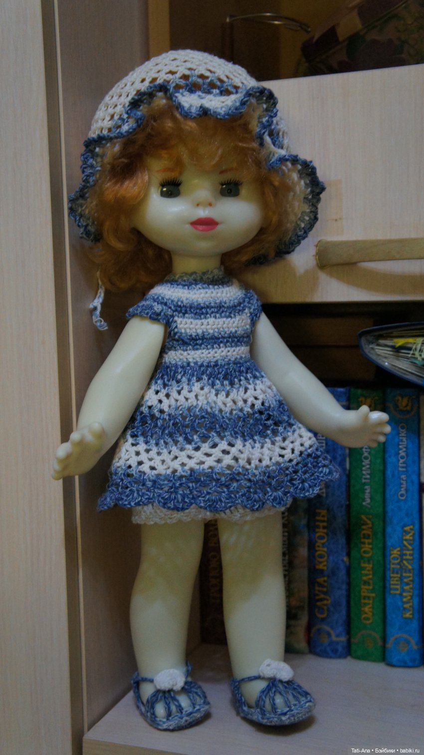 У неё были розовые босоножки, как у куклы Маши на Ваших фото. К сожалению, года 2-3 назад они каким-то образом потерялись. Очень они мне нравились — ведь у других моих советских кукол были туфельки.
