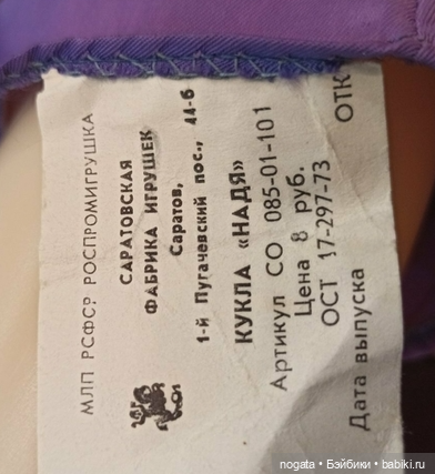 И второй вопрос: к этой этикетке у меня нет фото куклы. Кто-нибудь знает саратовскую куклу Надю?
