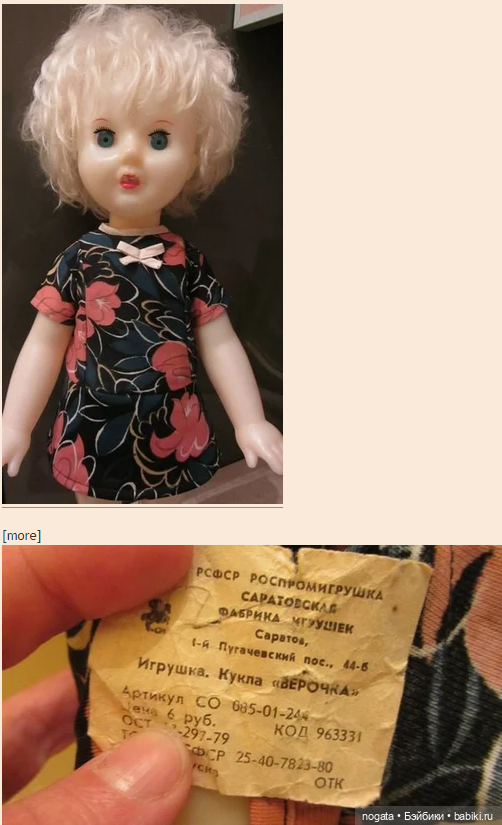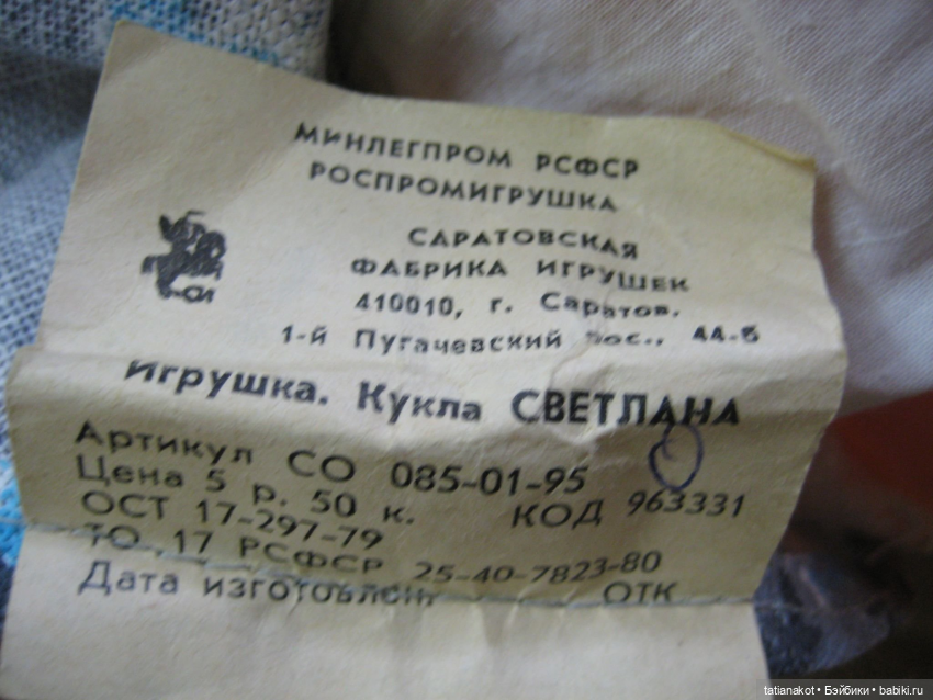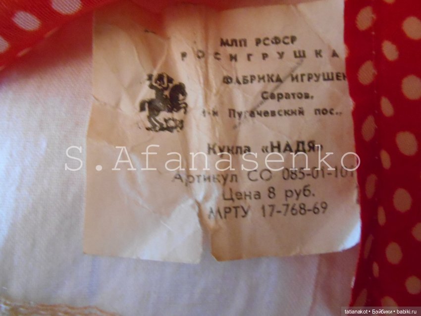 Я еще Надю саратовскую с этикеткой на платьице нашла. Но так и не поняла, чем она отличается от Людмилы — сестры-близнецы)))