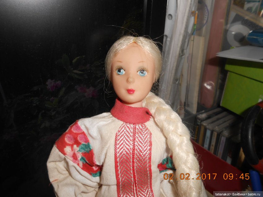 И я все больше склоняюсь к тому, что это, наверное, была какая- то загорская кукла, может, ограниченный выпуск какой- то. Потому что вот увидела я Оксану, в- общем- то похожа, и прическа, и общий вид, но только вот не помню я чтобы у моей куклы был такой широкий нос. Но вот что меня еще заставляет думать в сторону загорских, у моей куклы была очень необычная для того времени одежда, юбочка в клетку и красная капроновая блузка. Так вот, у Оксаны, увиденной мною в одном из объявлений блузка другого цвета, но она того же самого фасона!