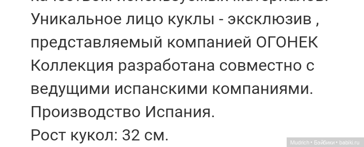 Но прежние куклы это тоже не их разработки, за исключением, пожалуй, барбиобразных. Вот те оригинальные, да. А вот все те красивые, это Италия или Испания, ну раз они пишут Испания, наверное, так. Только вот, непонятно, к какому времени это утверждение относится. Вероятно, это они про современных Арину и компанию.