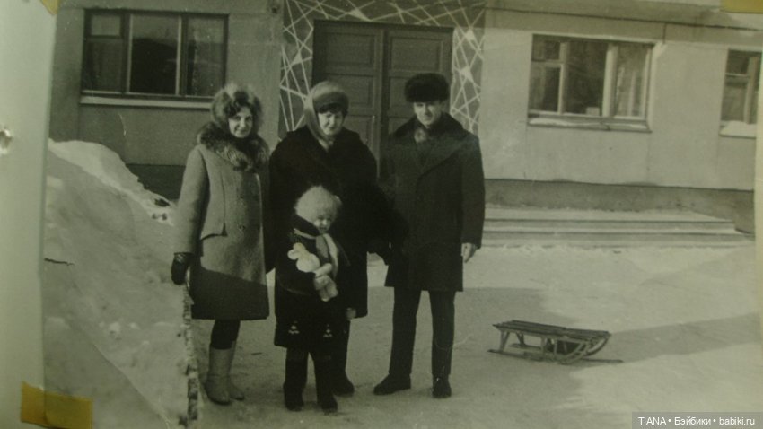 Не, ну в 83 году я уже, конечно сама ходила. В той самой шубе)) И саночки возила сама. Маленькие, игрушечные. С Олей. Шубки у нее не было, был теплый конвертик и колпачок.
