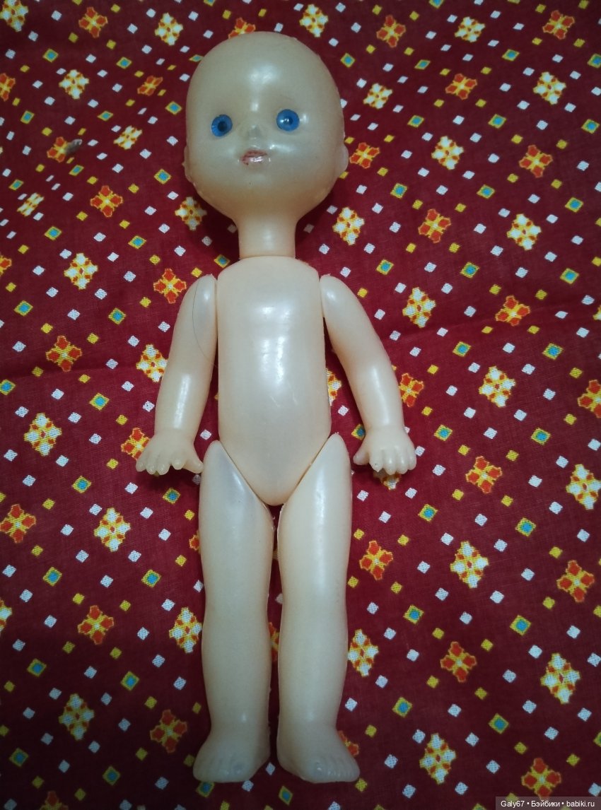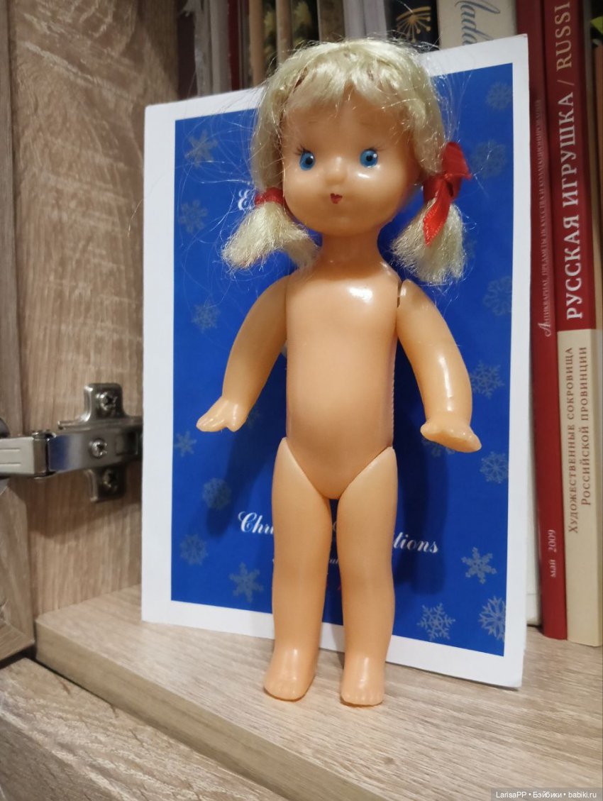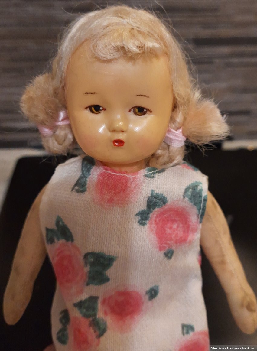 А потом мамина подруга подарила мне маленькую куколку, которую у меня благополучно украли в лагере. Горе мое было велико, до сих пор страдаю! И я стала ее искать. Помнила я ее плоховато, все же, она у меня совсем недолго пожила, а было мне тогда десять лет. Маленькие звездочки и так- то редко встречаются, а те, что встречаются, они из полиэтилена. А моя была с целлулоидной головой! Я долго думала, что или я ошиблась с фабрикой, или меня подводит память, но однажды я ее увидела!