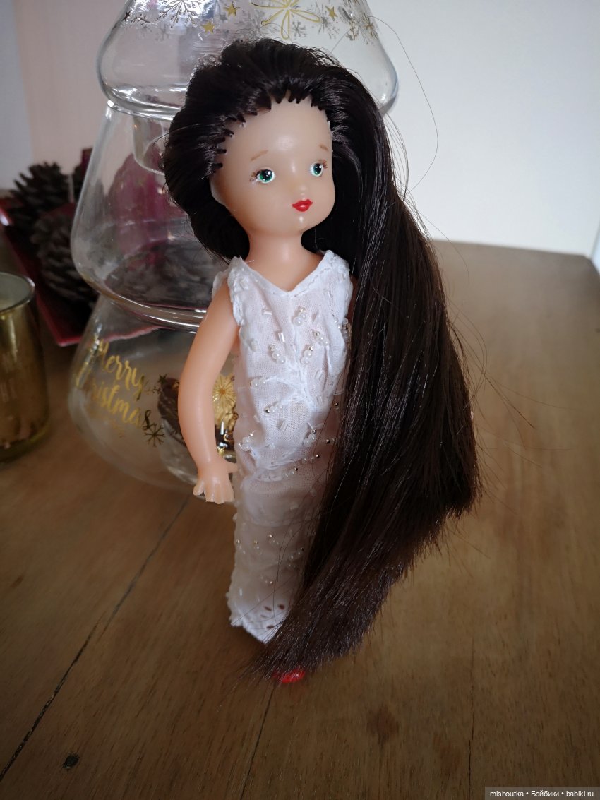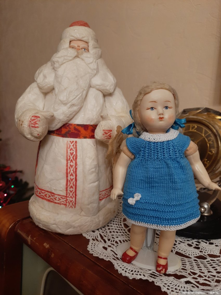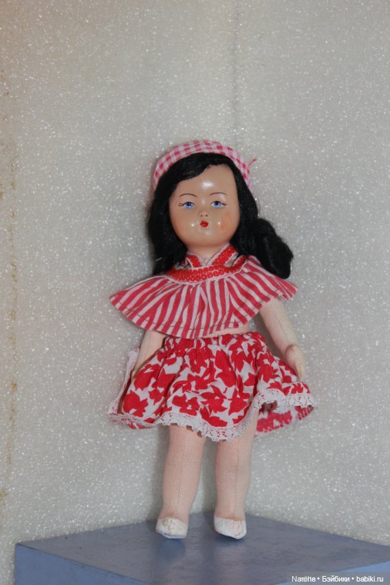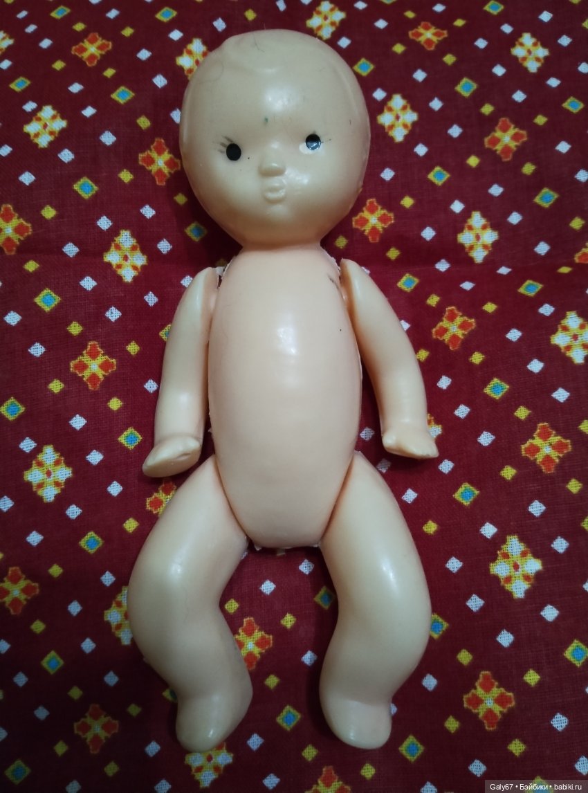 А потом мамина подруга подарила мне маленькую куколку, которую у меня благополучно украли в лагере. Горе мое было велико, до сих пор страдаю! И я стала ее искать. Помнила я ее плоховато, все же, она у меня совсем недолго пожила, а было мне тогда десять лет. Маленькие звездочки и так- то редко встречаются, а те, что встречаются, они из полиэтилена. А моя была с целлулоидной головой! Я долго думала, что или я ошиблась с фабрикой, или меня подводит память, но однажды я ее увидела!