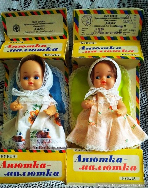 На фабрике выпускались и маленькие куколки с именем Анютка — малютка.