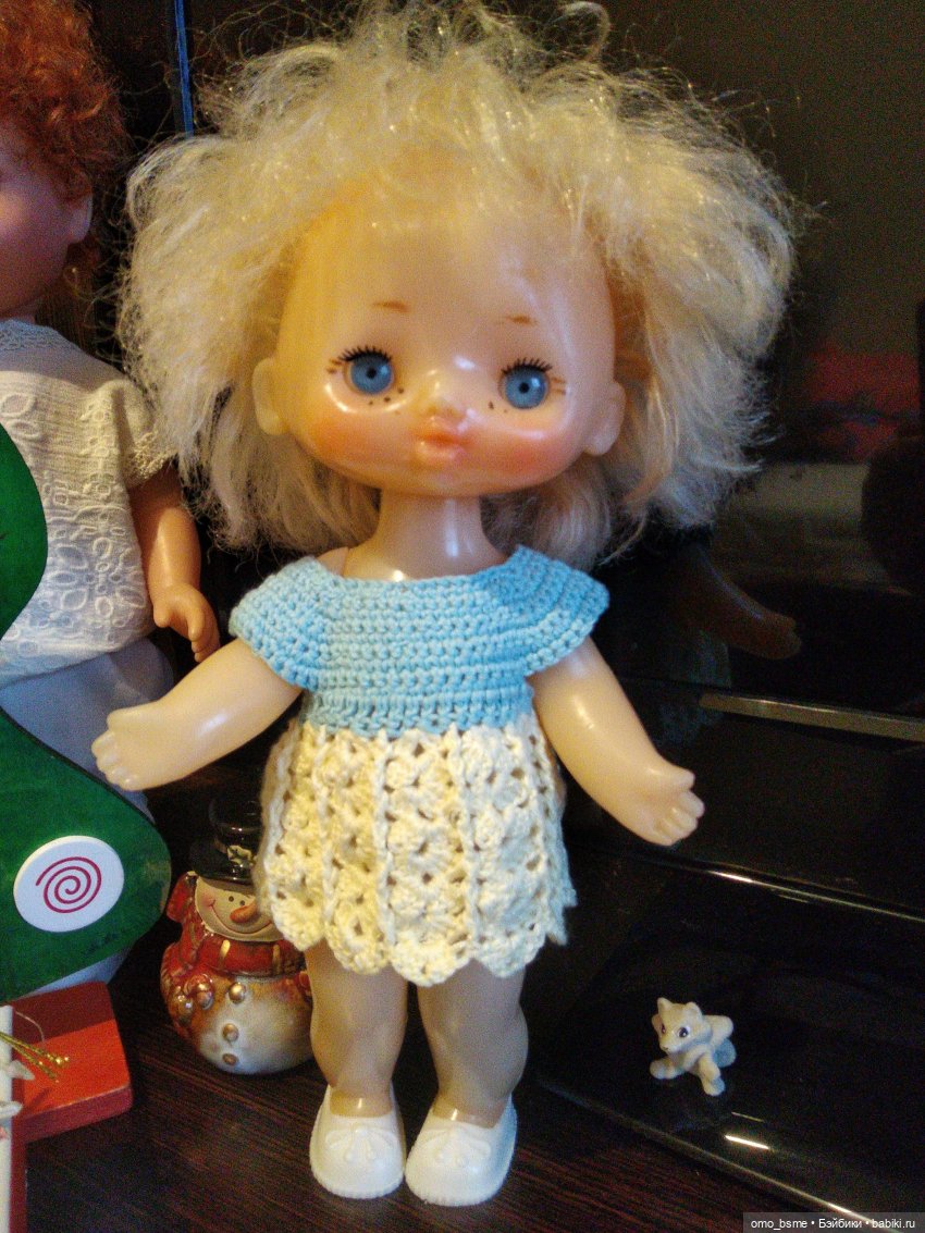 В интернете под именем Оля, для меня же Танюша:)) Моргающие глазки по причине поломки были зафиксированы в далеком детстве, решила вытащить и попробовать отремонтировать, также хочу перепрошить полулысую шевелюру. Заигранная моя любимка))) Родное платье нуждается в ремонте.
