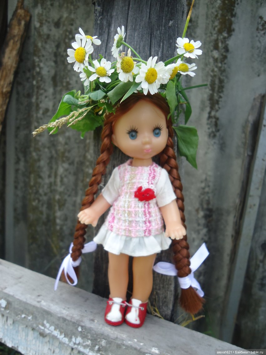 У меня была такая в детстве куколка, но с черными волосиками.И даже помню, как отвалился паричок и как я переживала, но бабушка помогла, мы приклеили паричок на пва.