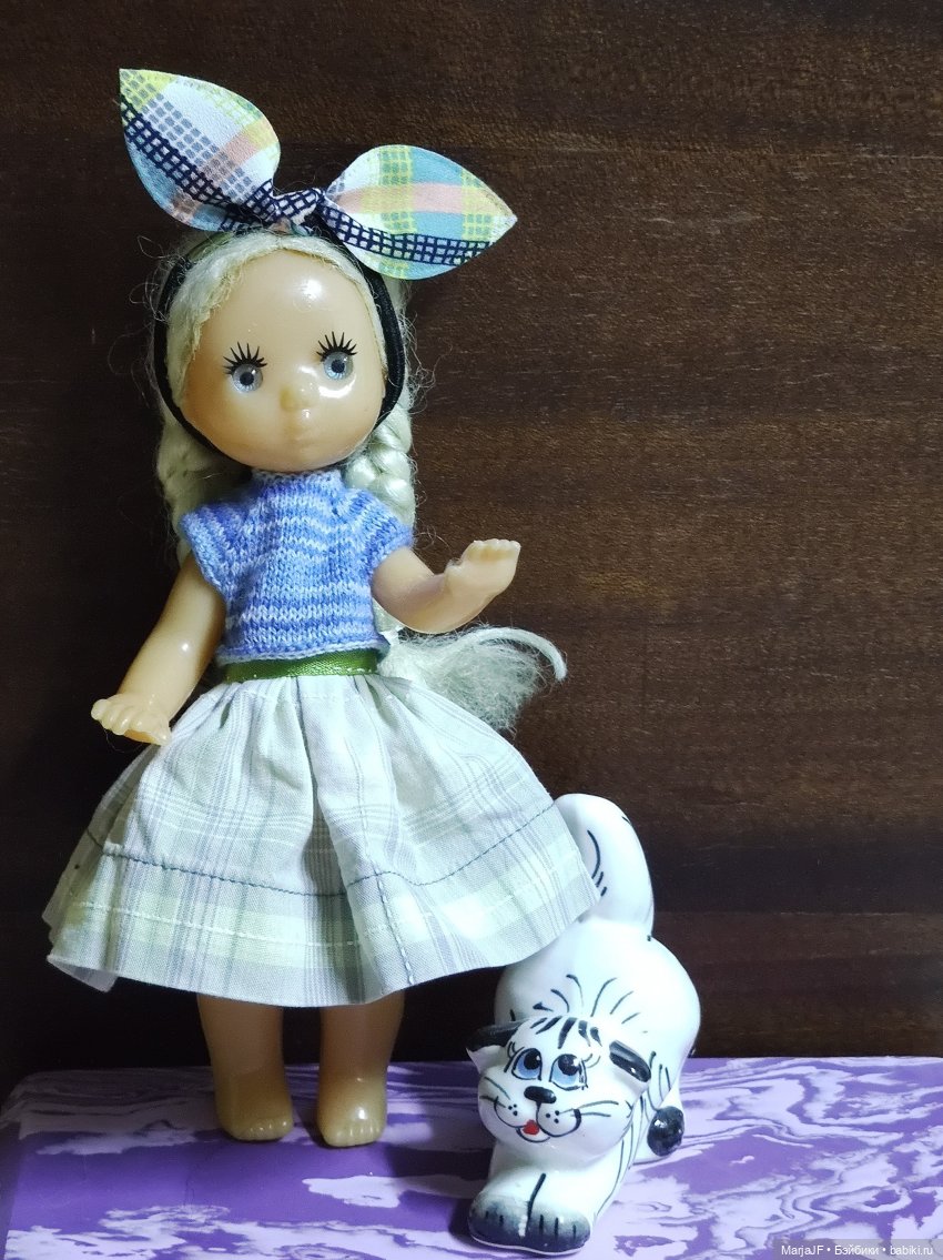 А я вообще не играю почему-то и в детстве особо не помню чтобы играла с куклами. Во шитье и вязание для них помню, примерки и «украдание» клубочков из бабушкиного шкафа. Вот и сейчас так же, отмыла, расчесал, принарядила и все… Научите играть!!! Бояться вроде и стесняться некого от слова совсем.