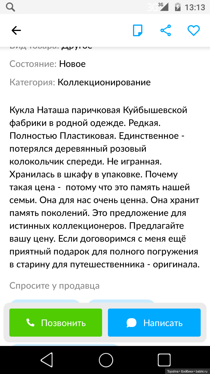 А объявление не розыгрыш… я писала, хотела купить. Сначала подумала, что продавец тоже пошутил и цена договорная. Но нет… она мне потом еще гневные письма писала, что я подсылаю людей, потому что ей многие стали писать, что таких цен нет.