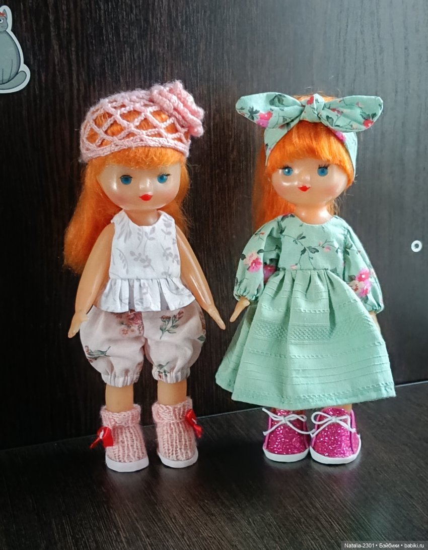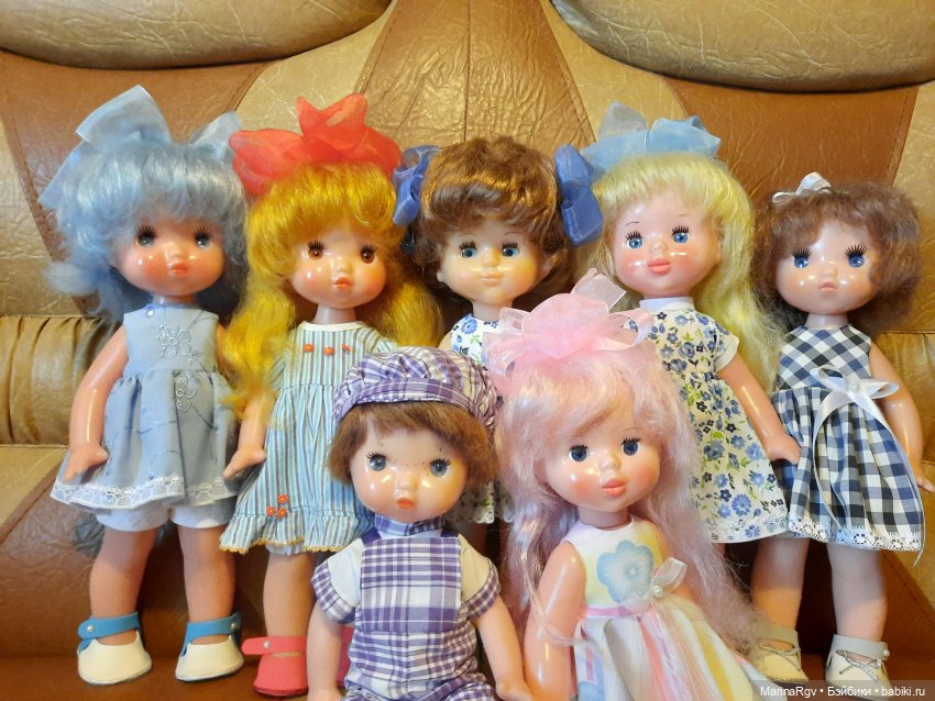 У меня собралось уже шесть Валюшек. Одна, более ранняя советская винтажная кукла, немного отличается от подруг, но вписывается в их компанию. Я сшила девочкам, у которых не сохранились наряды, новые платья, слепила обувь из полимерной глины. Надеюсь, теперь, мои любимицы понравятся и вам!